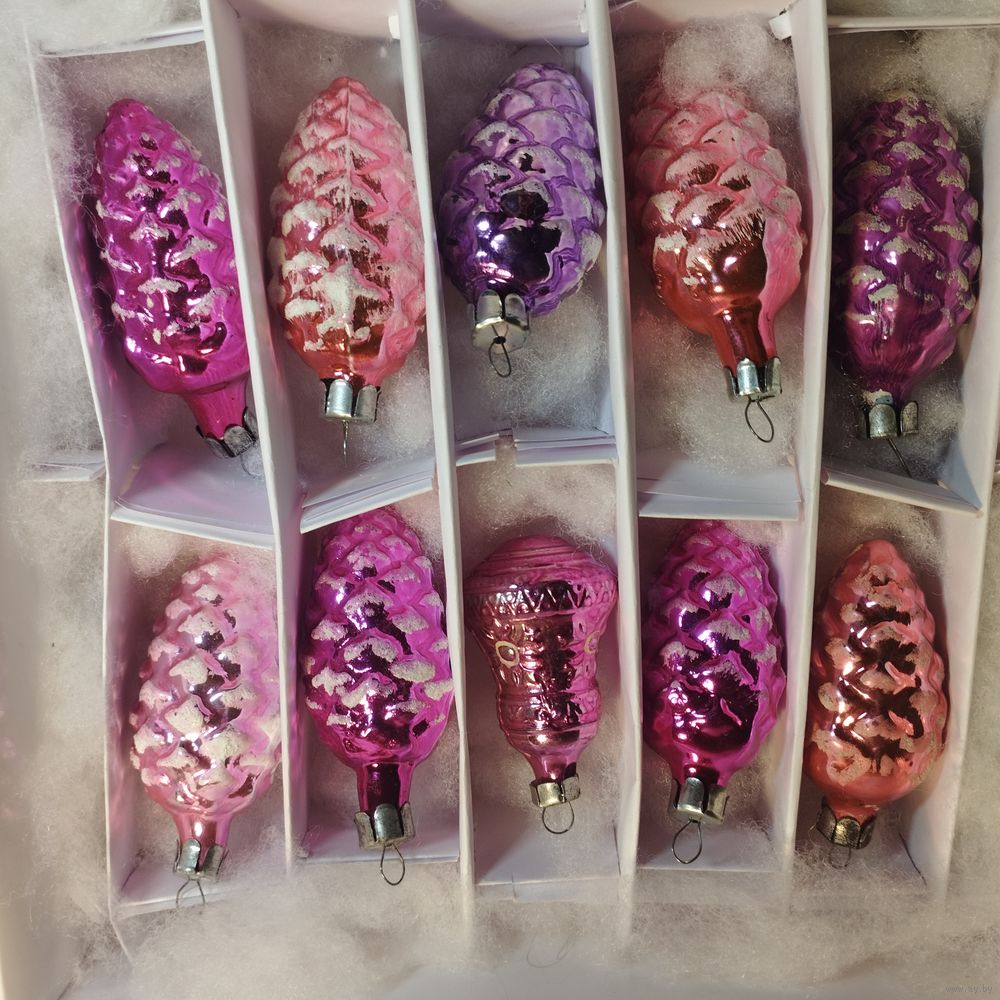 | В коробке 10 игрушек: 9 шишек и колокольчик, у колокольчика скол на трубочке, цене не учитывается, как добор | |