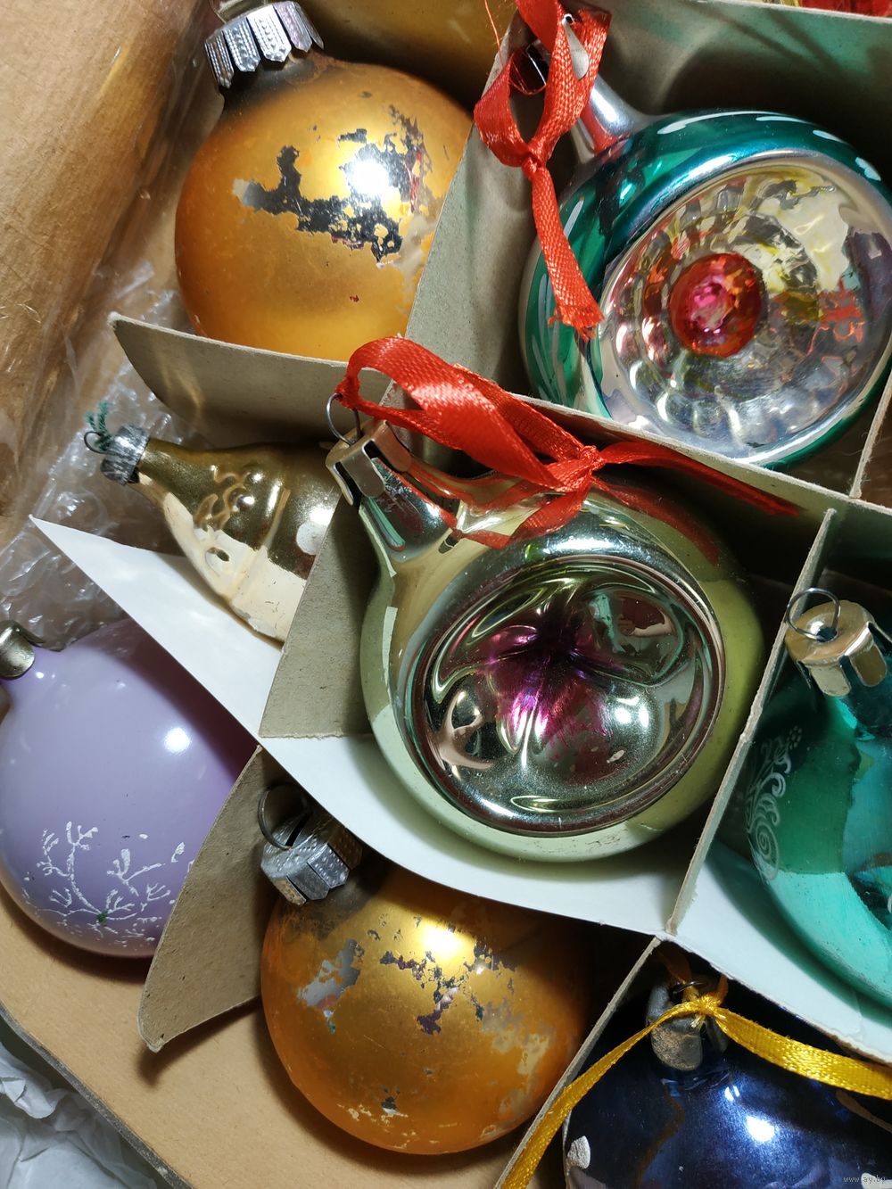 | Два больших лота советских елочных игрушек.незначительное повреждение одной игрушки (на фото) | |