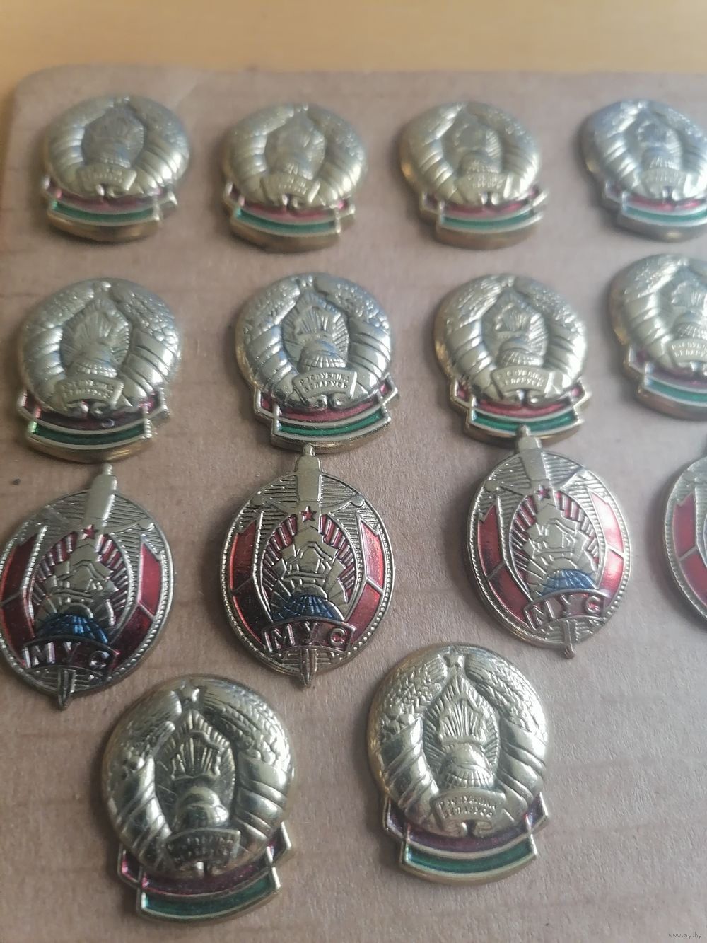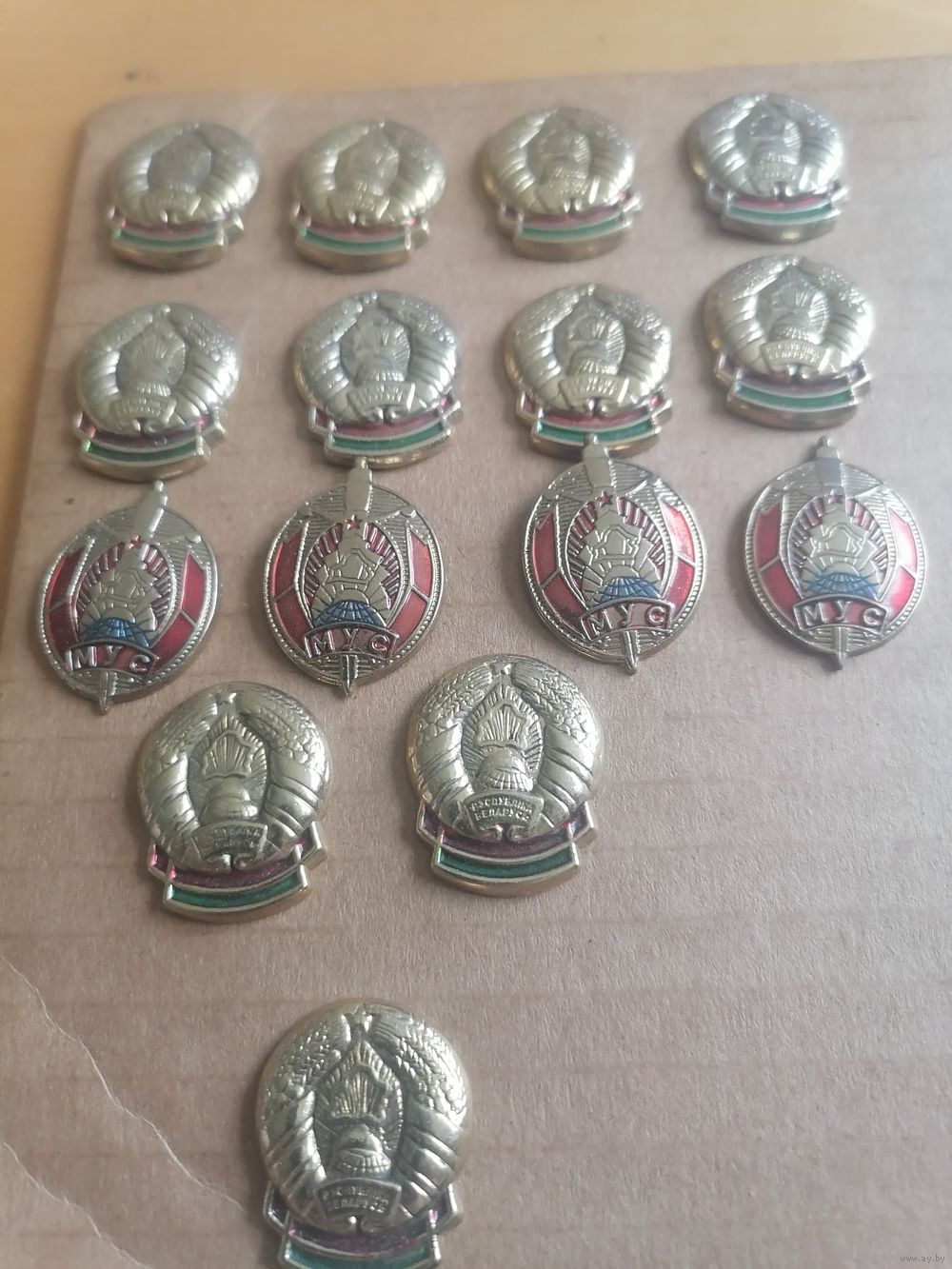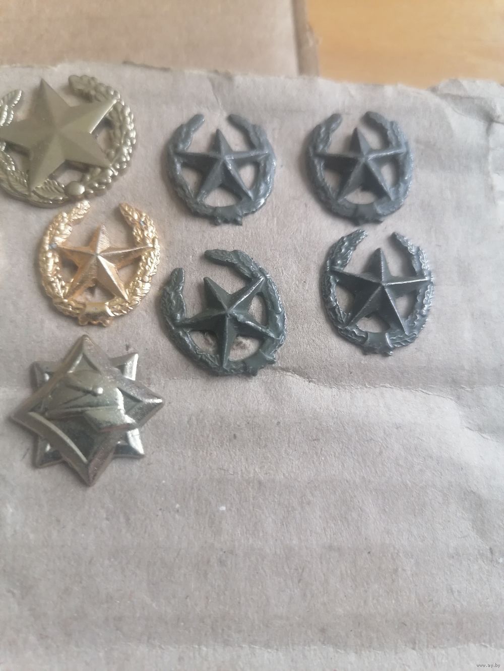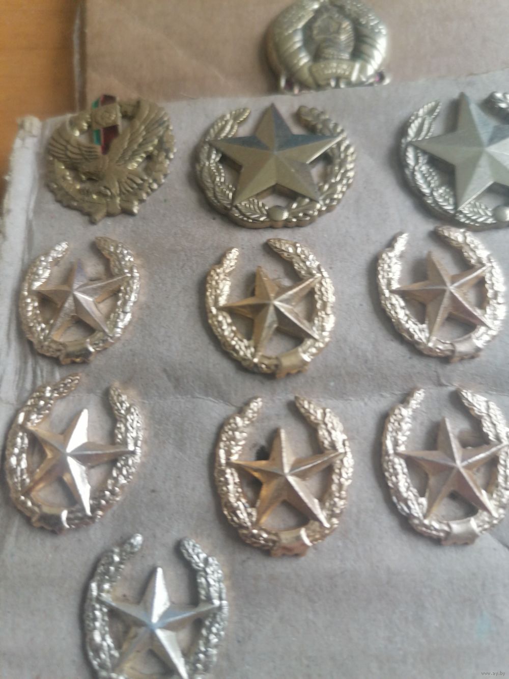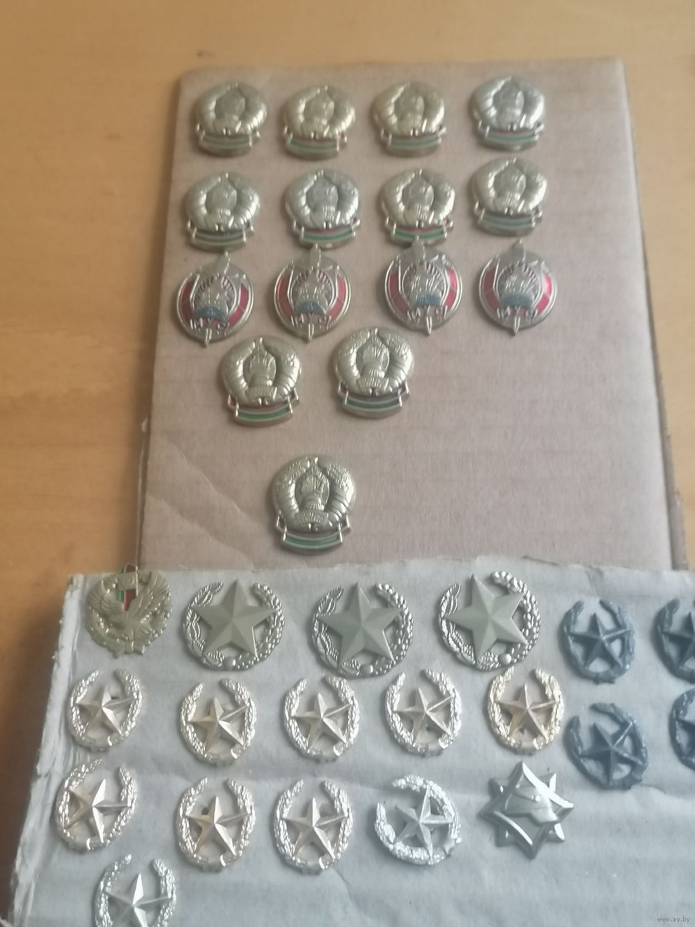 Эмблемы на петлицы, погоны.РБ.См.фото.На нижней один усик отломан.За все.
