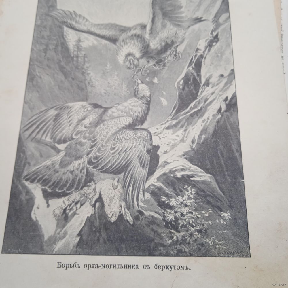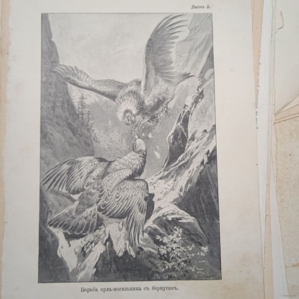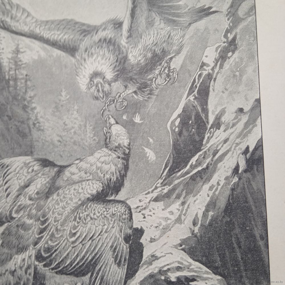 Энциклопедическая гравюра . Борьба орла-могильника с беркутом. 23х15см. конец19 нач.20век.
