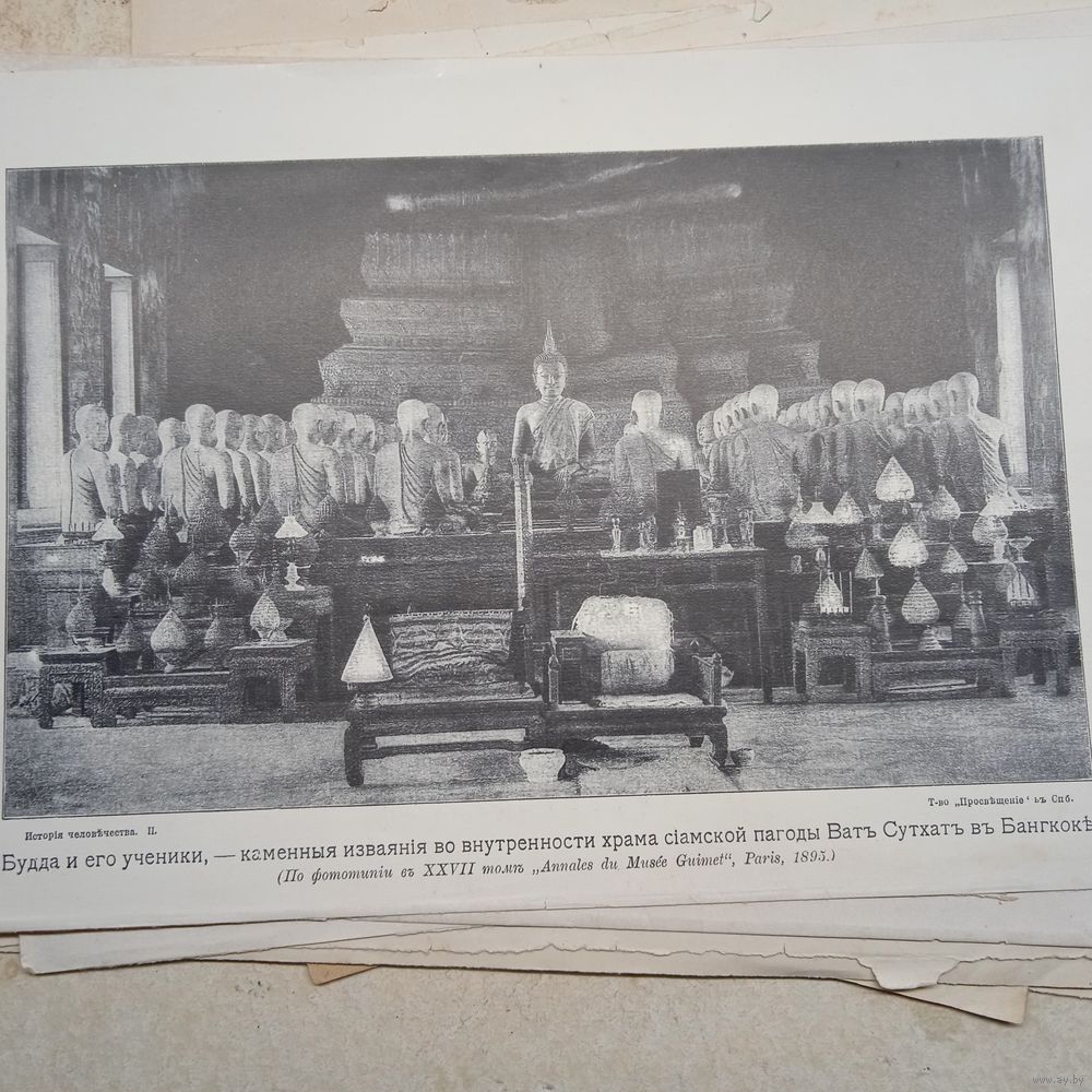 Энциклопедическая гравюра . Будда и его ученики, 25х17см. Спб.19-нач.20в.