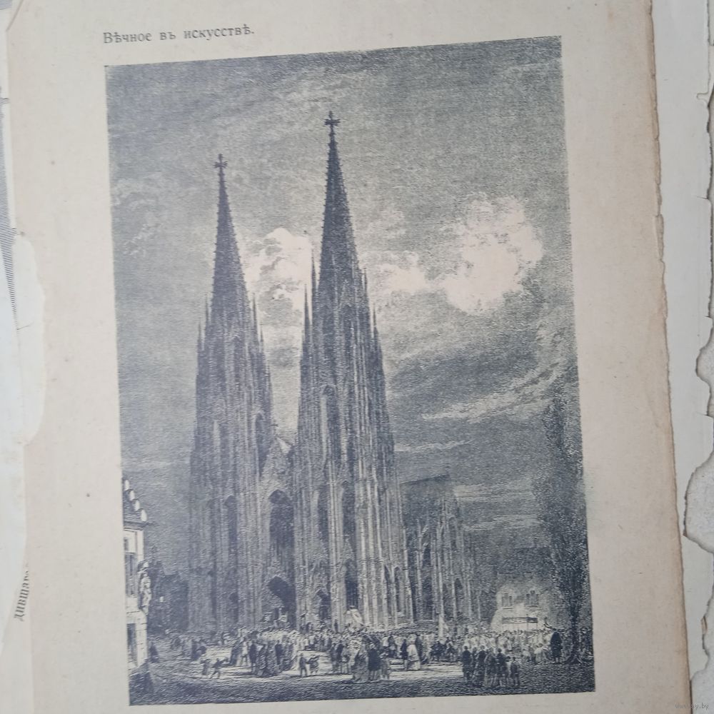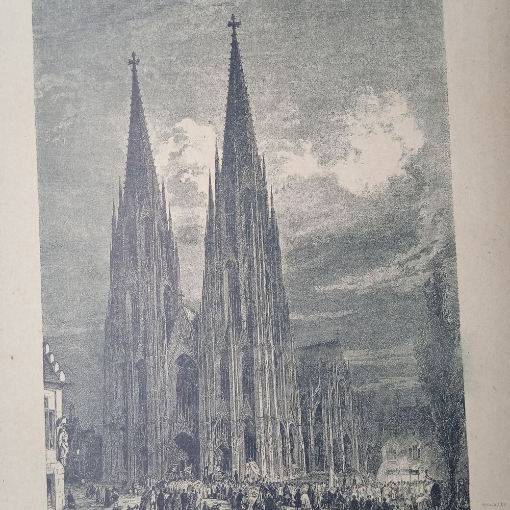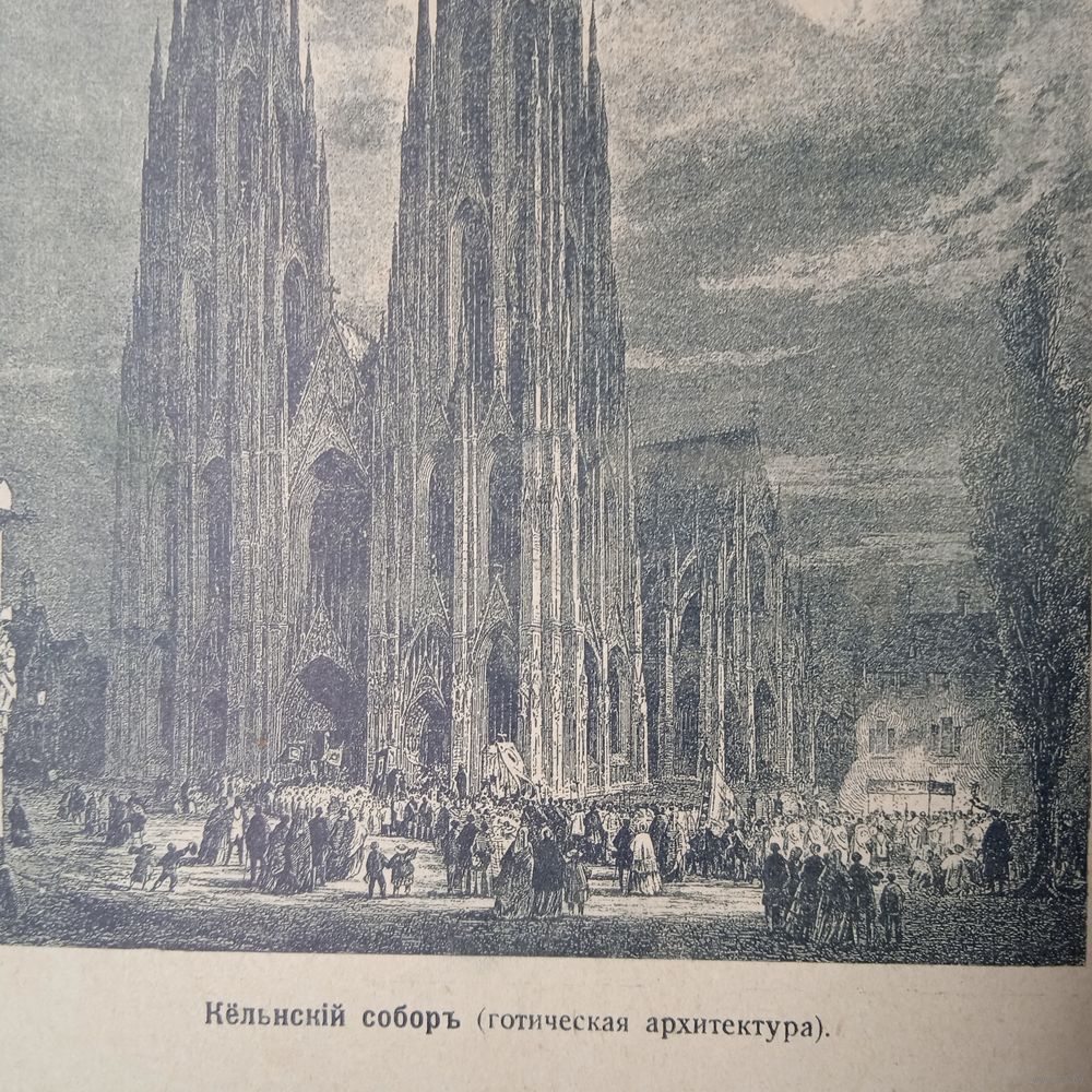 Энциклопедическая гравюра. Кельнский собор. 19 нач.20век. 22х15см.