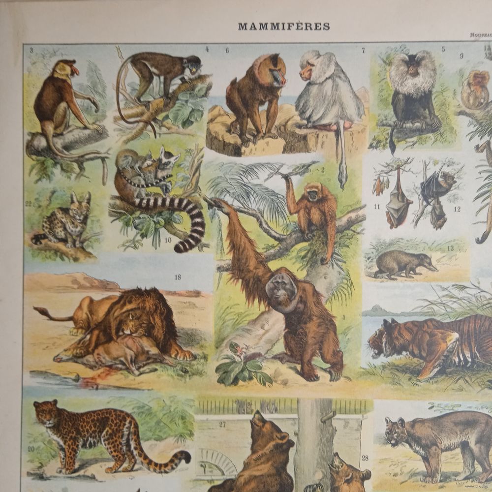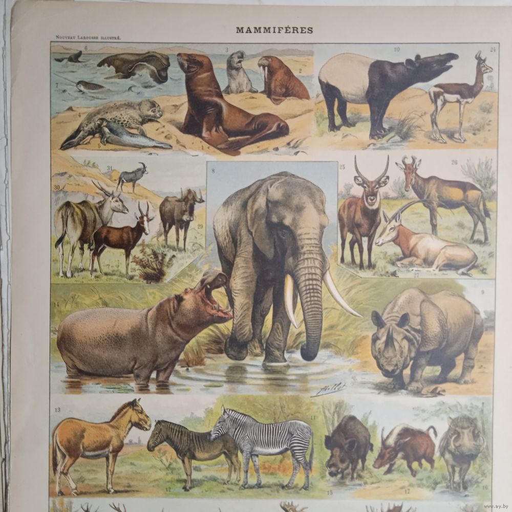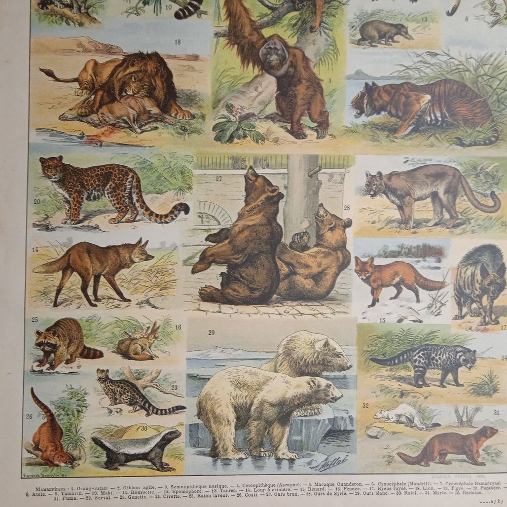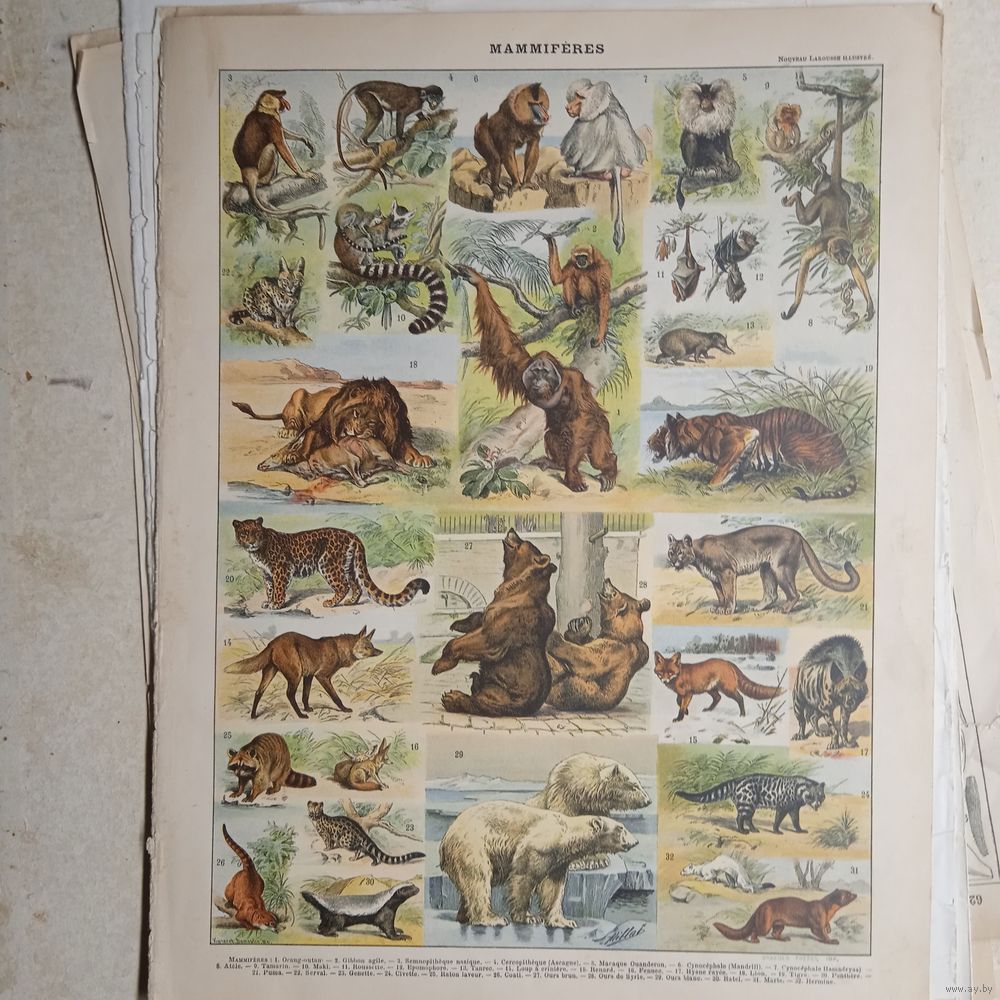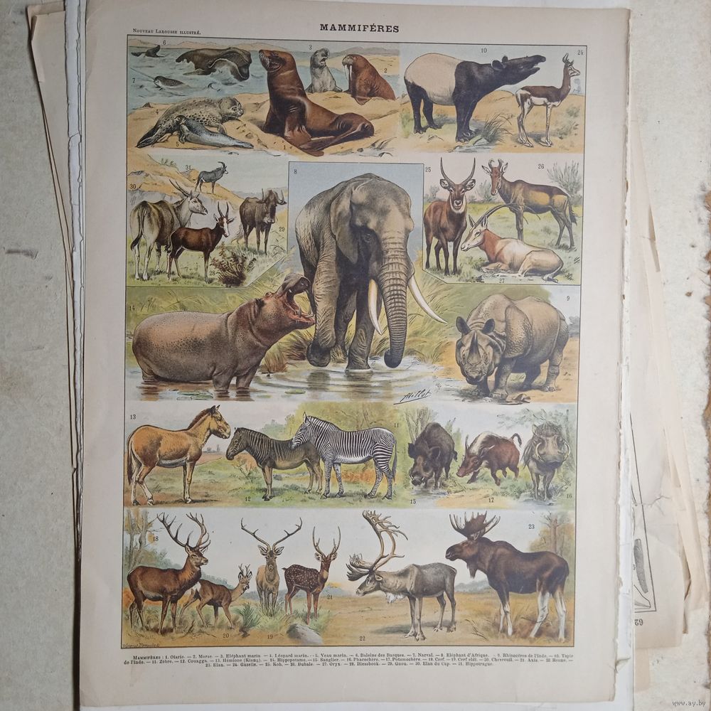Энциклопедическая гравюра .MAMMIFERES 2. Франция конец 19века. .31х24см.