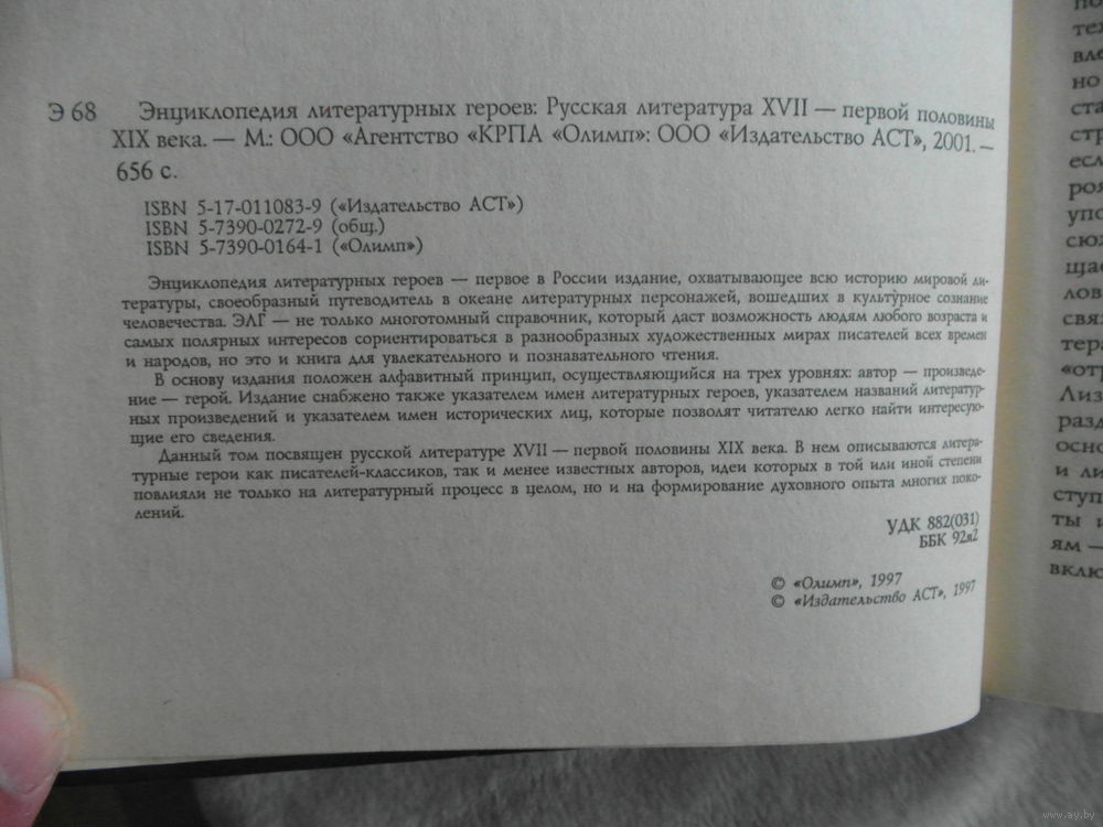 Энциклопедия литературных героев — первое в России издание, охватывающее всю историю мировой литературы, своеобразный путеводитель в океане литературных персонажей, вошедших в культурное сознание человечества. ЭЛГ — не только многотомный справочник, который даст возможность людям любого возраста и самых полярных интересов сориентироваться в разнообразных художественных мирах писателей всех времен и народов, но это и книга для увлекательного и познавательного чтения. В основу издания положен алфавитный принцип, осуществляющийся на трех уровнях: автор — произведение — герой. Издание снабжено также указателем имен литературных героев, указателем названий литературных произведений и указателем имен исторических лиц, которые позволят читателю легко найти интересующие его сведения. Данный том посвящен русской литературе XVII — первой половины XIX века. В нем описываются литературные герои как писателей-классиков, так и менее известных авторов, идеи которых в той или иной степени повлияли не только на литературный процесс в целом, но и на формирование духовного опыта многих поколений