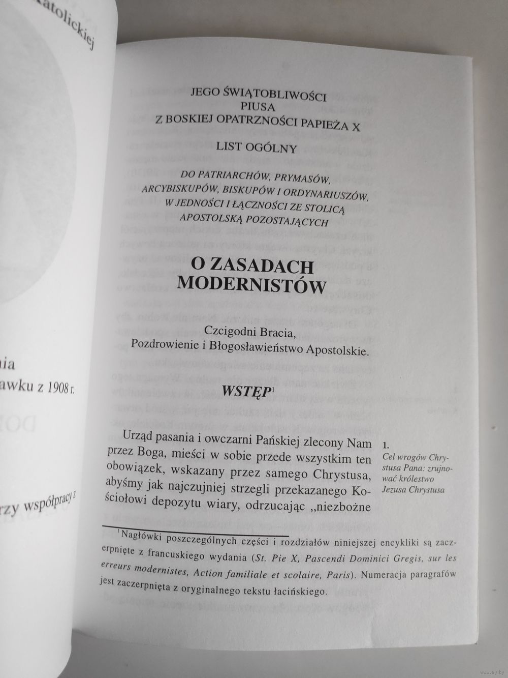 Ojciec Święty opisuje błędną doktrynę modernistów, którą nazywa syntezą wszystkich herezji. Wśród najbardziej niebezpiecznych zasad św. Pius X wymienia: immanentyzm życiowy, religię jako owoc przyrody, ewolucję dogmatów, doświadczenie religijne, negację Tradycji, symbolizm teologiczny, permanentyzm, agnostycyzm, ewolucjonizm oraz manię reformatorską we wszystkich dziedzinach życia kościelnego. Już na wstępie papież zaznacza, iż wrogowie Chrystusa ukrywają się w samym wnętrzu Kościoła.