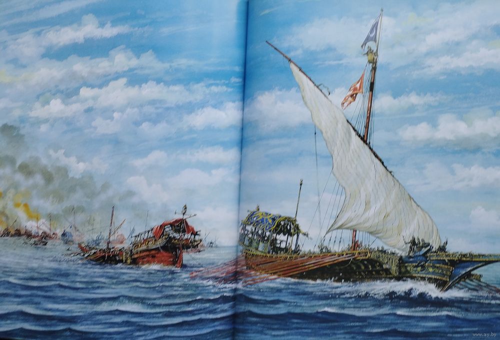 Большой энциклопедический формат. Мелованный альбом. Тираж 1200 экз. На протяжении всего XVI столетия Средиземноморье оставалось полем ожесточенной битвы между христианами и мусульманами. Решающее сражение, в котором с обеих сторон сошлись крупнейшие галерные флоты в истории, определило дальнейшую судьбу стран средиземноморского бассейна. В октябре 1571 г. османские флотилии столкнулись с уступающим им в численности христианским флотом Священной лиги. В ходе продлившегося около четырех или пяти часов боя христиане одержали убедительную победу, наголову разгромив турок. Лепанто суждено было стать одной из самых ожесточенных в истории морских битв. В предлагаемой вниманию читателя книге подробно прослеживается ход этой грандиозной военной кампании эпохи Возрождения.