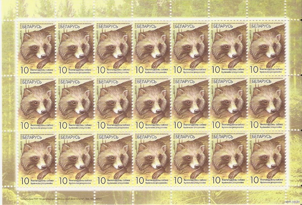 Енотовидная собака МЛ 7*3=21 марка, 2008 год (цена за весь лист)