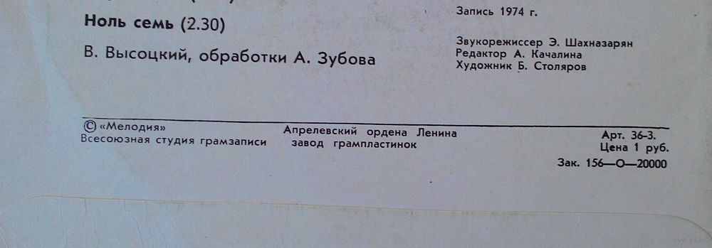 | Студия | "Мелодия" |
