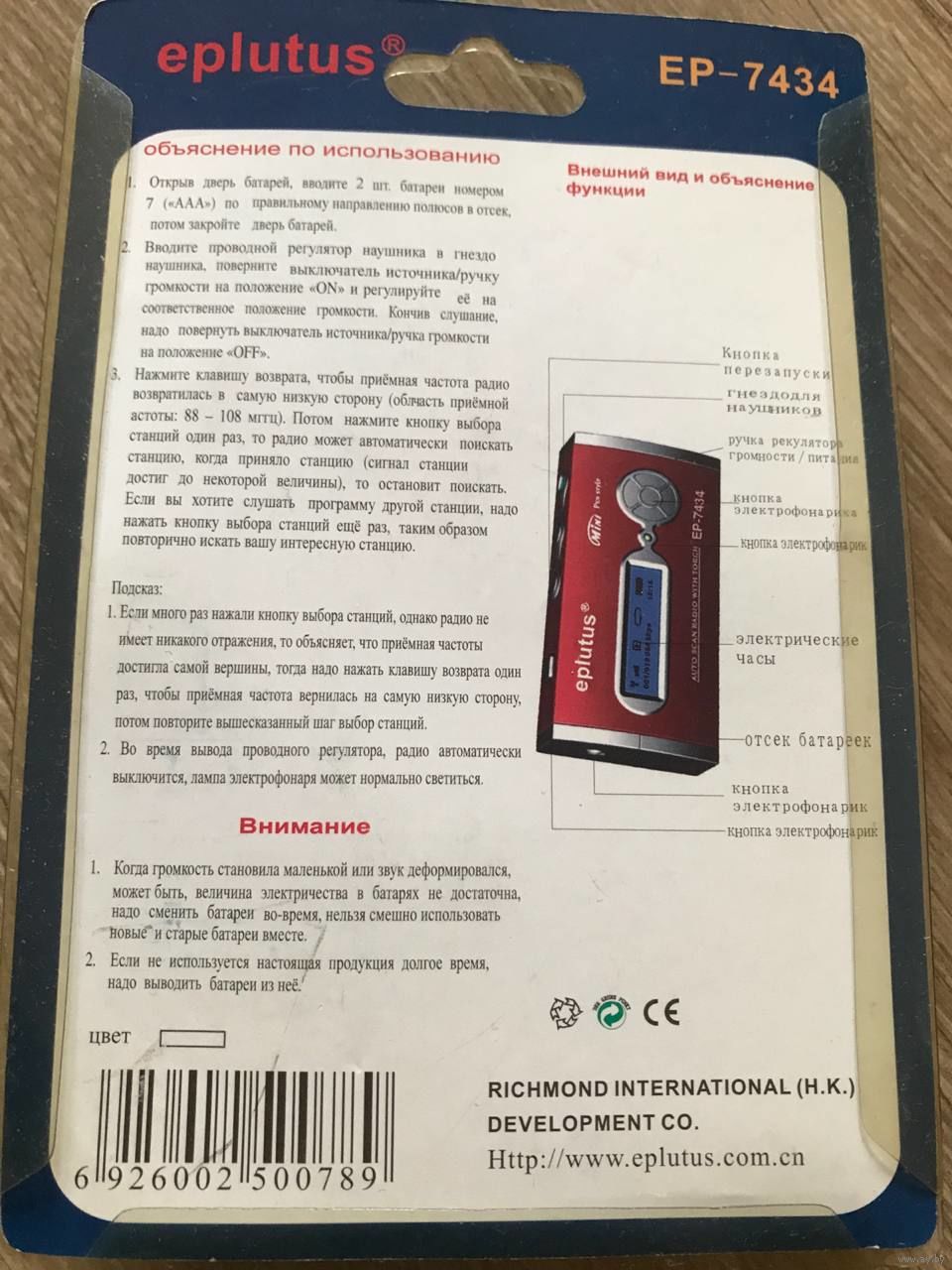 Eplutus модулированное радио EP7434 на частоте автоматизированного выбора станций с фонариком и наушниками Ориентировочно 2005-2006 гг. Винтаж