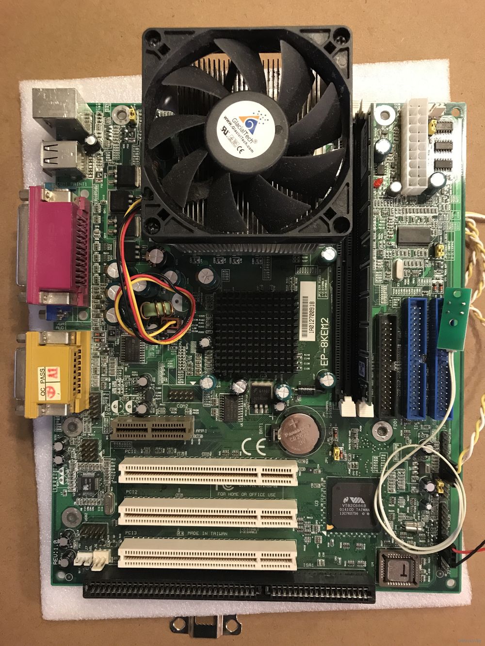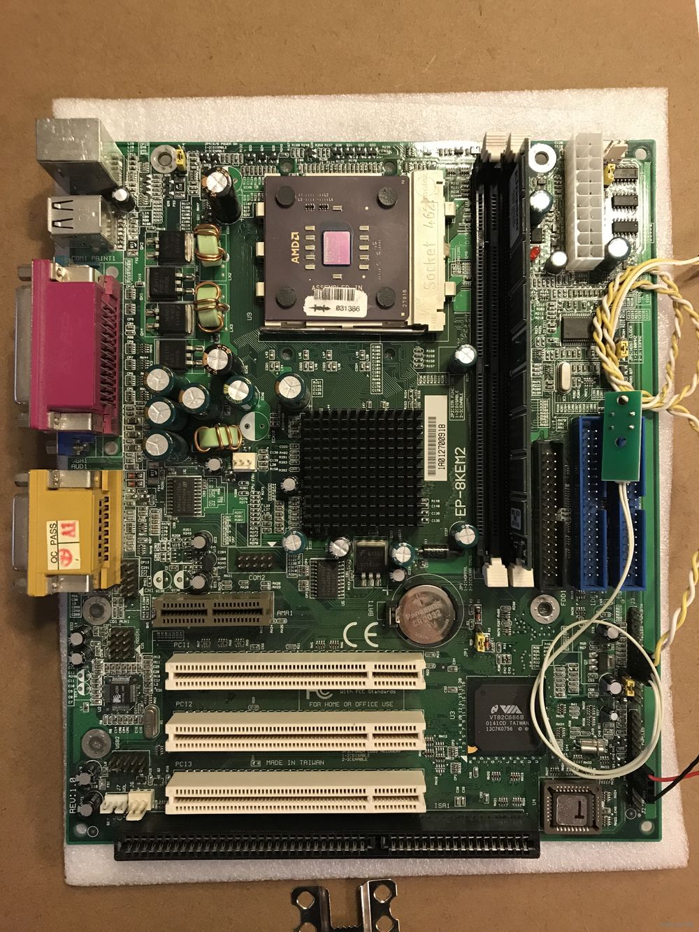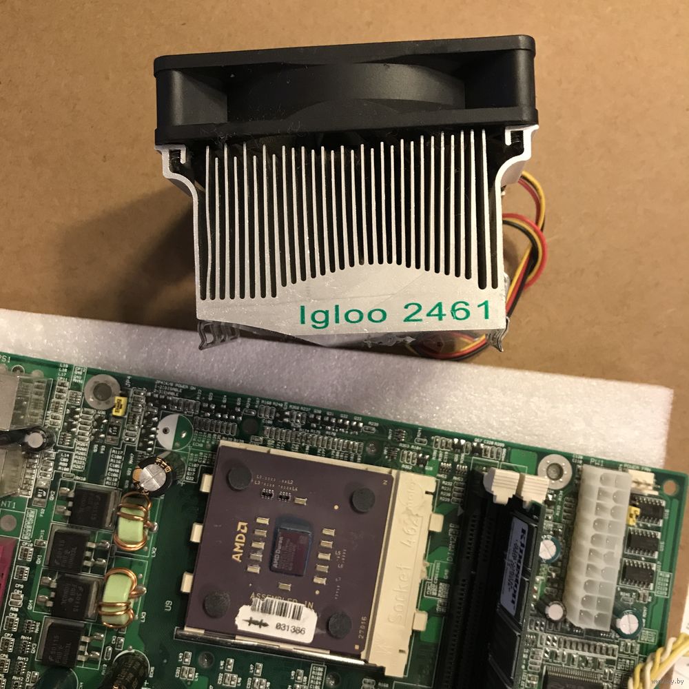 Комплект: материнская плата Epox EP-8KEM2 + процессор AMD Duron 800 MHz Socket 462 + модуль памяти KINGSTON 128MB SDRAM + кулер GlacialTech Igloo 2461.