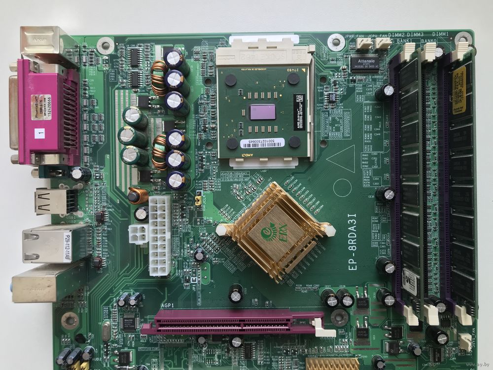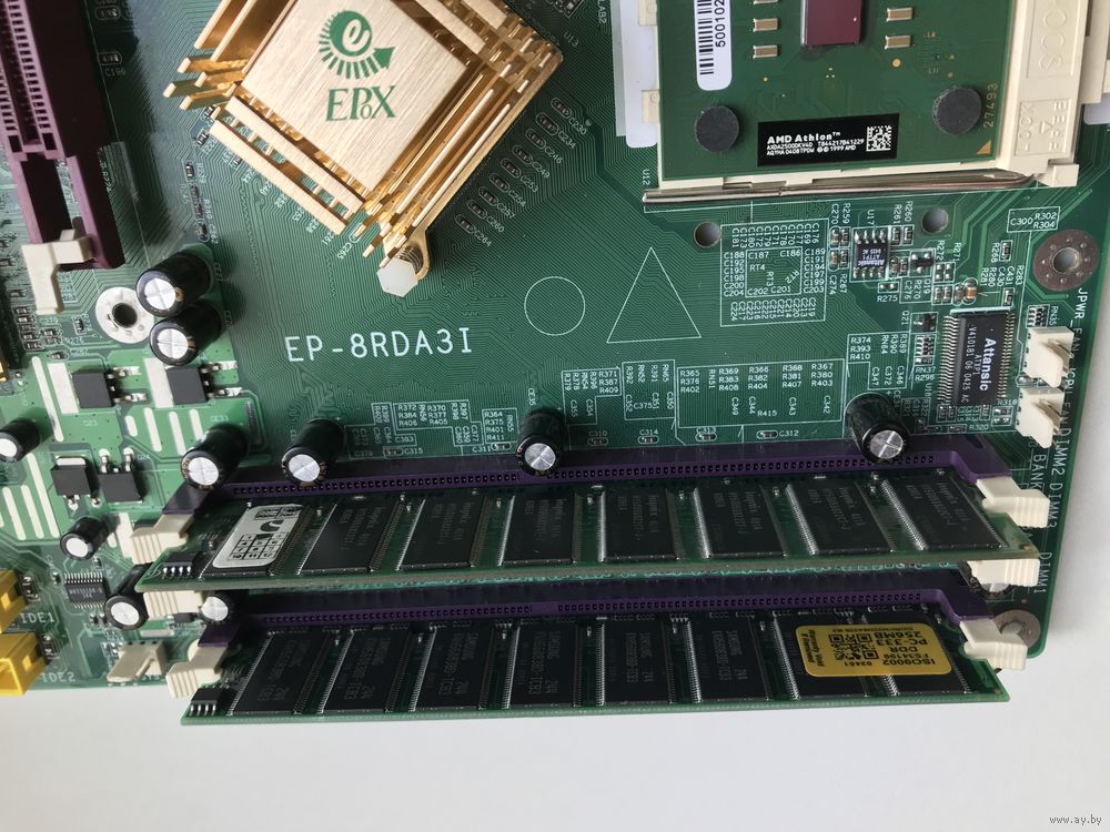 Комплект: Epox EP-8RDA3I (ревизия 3.3) для Socket 462 с процессором AMD Athlon AXDA2500KV4D, и двумя модулями 256 MB DDR333 (PC2700) RAM (512 МВ в сумме).
