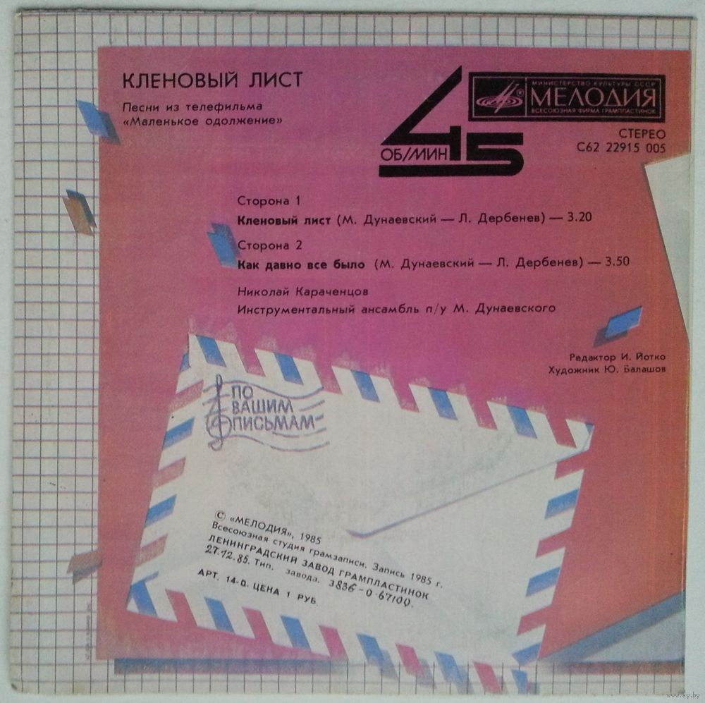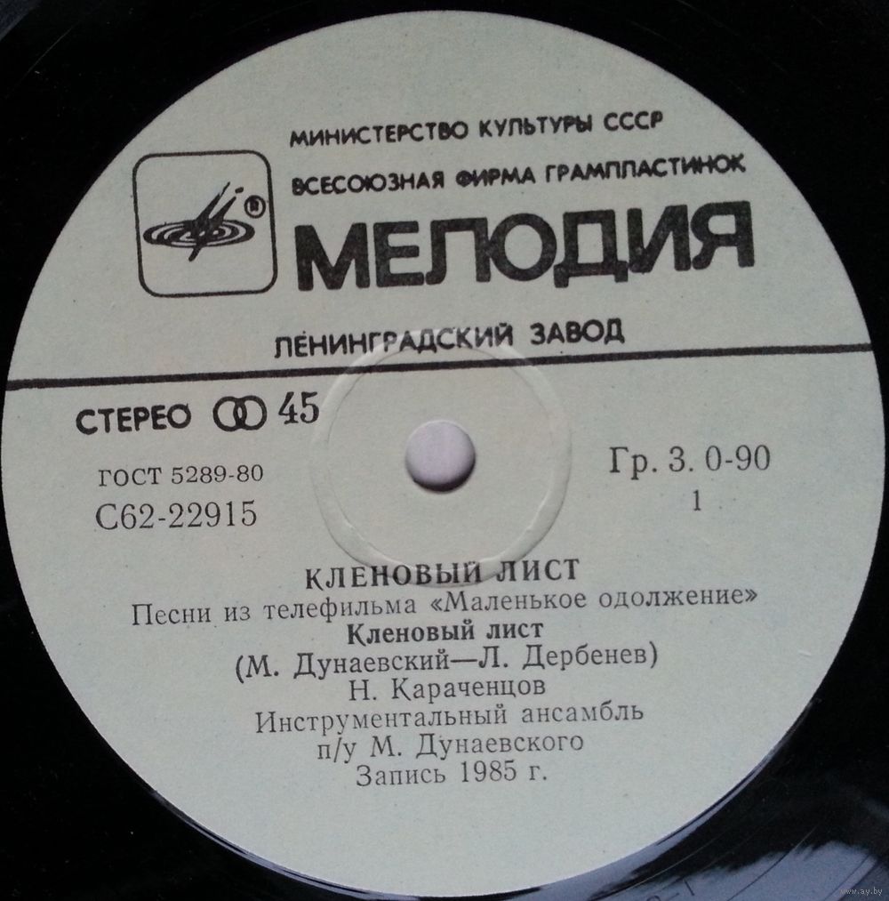 Всесоюзная студия грамзаписи. Запись 1985 г.