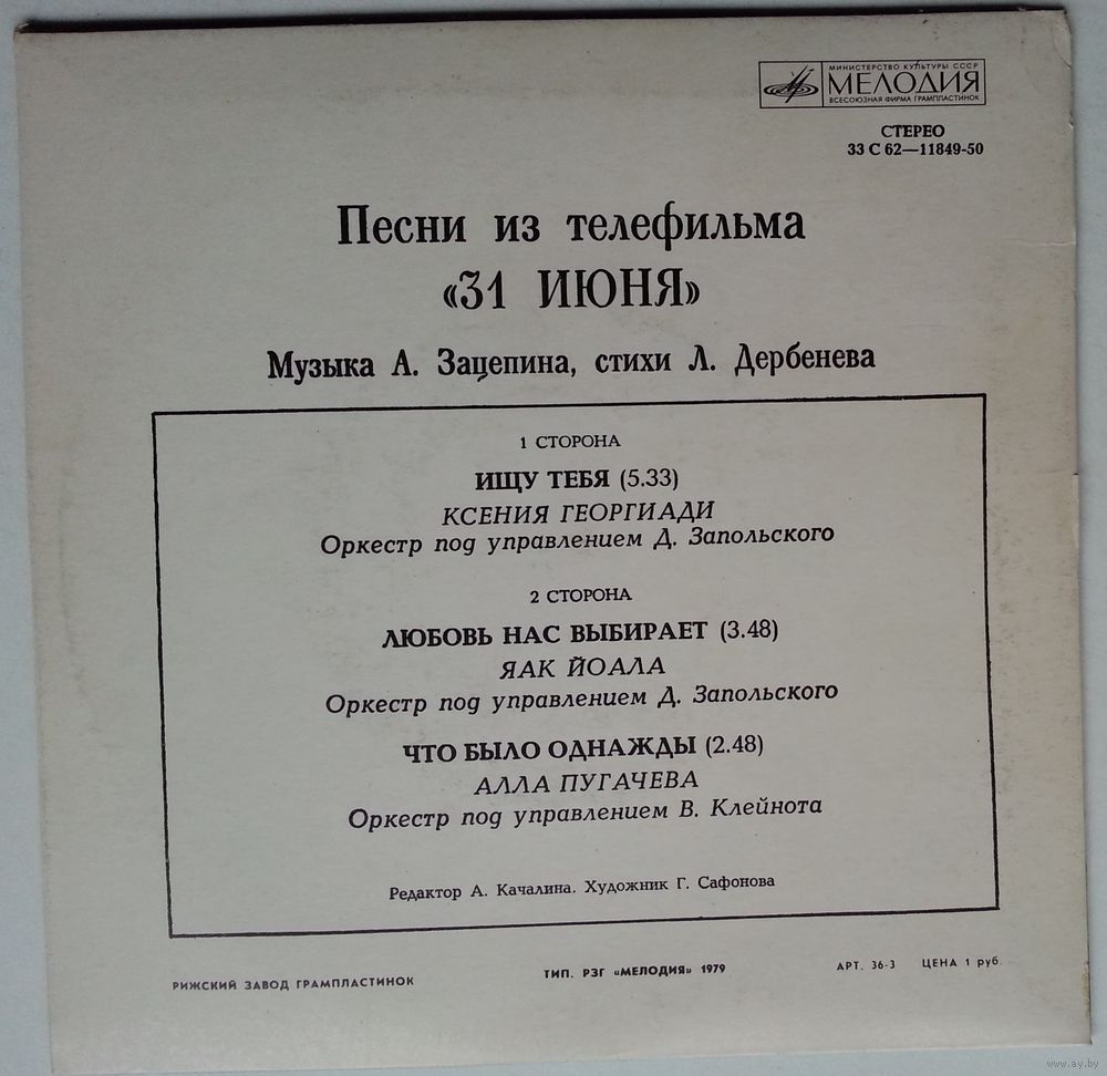 ПЕСНИ ИЗ ТЕЛЕФИЛЬМА "31 ИЮНЯ", музыка А.Зацепина, стихи Л.Дербенева