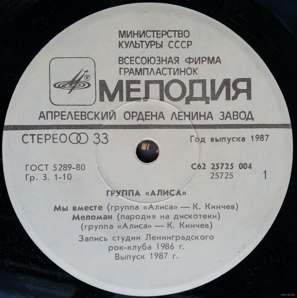 Первое официальное издание группы Алиса. Данный миньон, равно как и следующий, предварял появление диска-гиганта "Энергия" - в то время такой была стандартная практика фирмы Мелодия