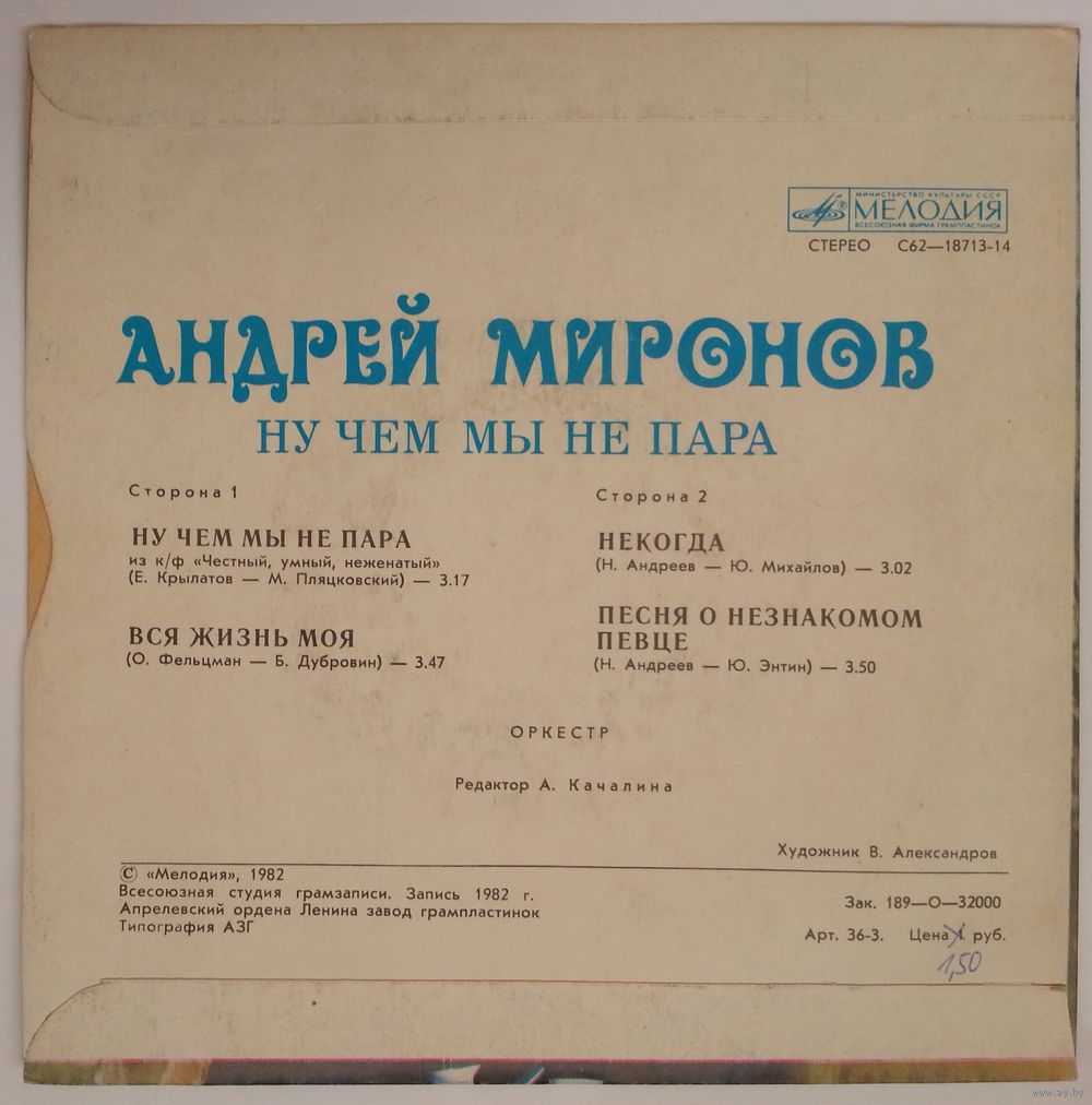 Всесоюзная студия грамзаписи. Запись 1982 г.