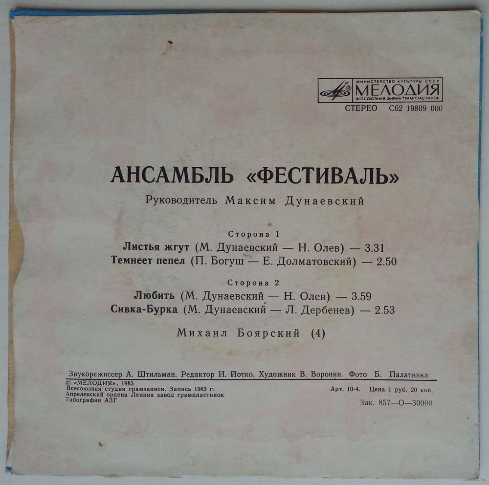 Всесоюзная студия звукозаписи. Запись 1983 г.