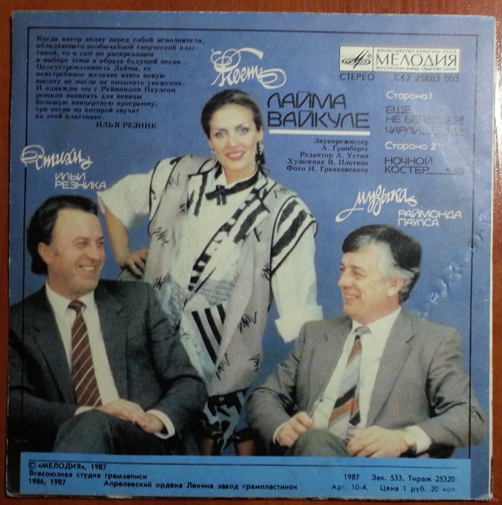 Целеустремленность Лаймы, ее неистребимое желание взять новую высоту не могли не вызывать уважения. И однажды мы с Раймондом Паулсом решили написать для певицы большую концертную программу, три песни из которой звучат на этой пластинке.