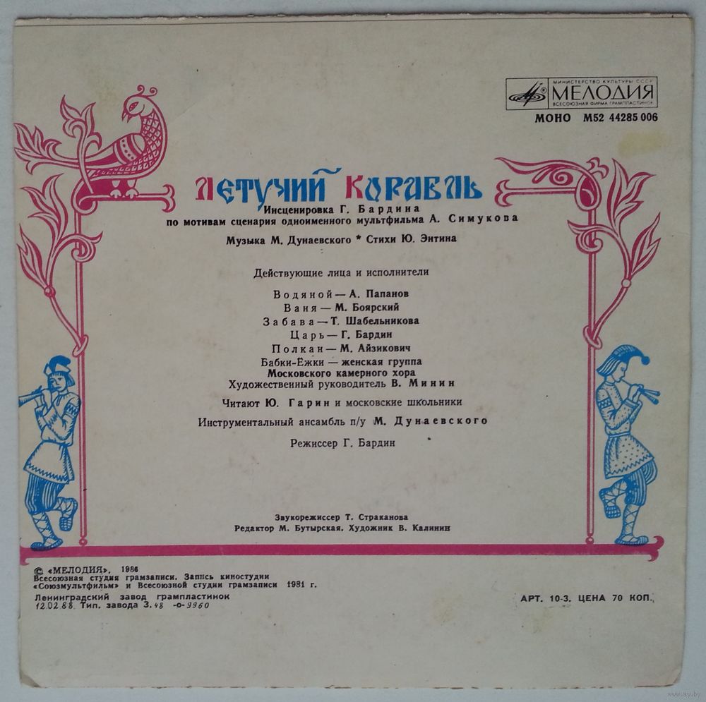 Всесоюзная студия грамзаписи. Запись киностудии «Союзмультфильм» и Всесоюзной студии грамзаписи 1981 г.