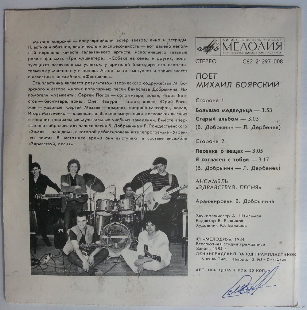 Эга пластинка является результатом творческого содружества М. Боярского и автора многих популярных песен Вячеслава Добрынина. Им помогали музыканты: Сергей Попов — соло-гитара, вокал, Игорь Ерастов — бос-гитара, вокал, Олег Кацура— гитара, вокал, Юрий Рогожин — ударные, Сергей Мазаев — кларнет, сопрано-саксофон, вокал, Игорь Матвиенко — клавишные. Все они выпускники московских высших и средних специальных музыкальных учебных заведений. Вместе впервые они собрались для записи песни В. Добрынина и Р. Рождественского «Земля наш дом», с которой дебютировали в телепрограмме «Утренняя почта». В настоящее время они выступают в составе ансамбля «Здравствуй, песня».