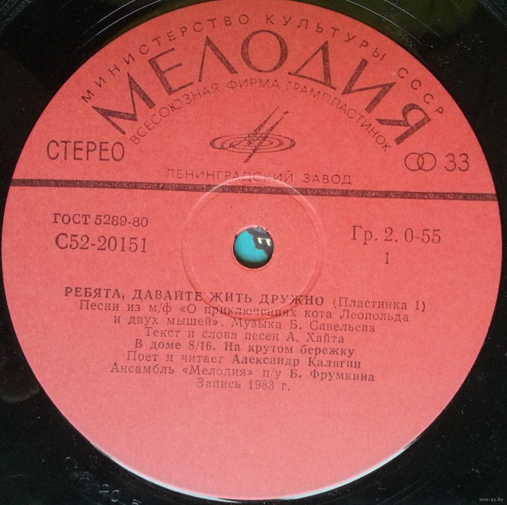 Всесоюзная студия грамзаписи. Запись 1983 г.