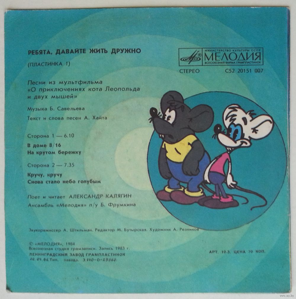 Песни из мультфильма «О приключениях кота Леопольда и двух мышей»