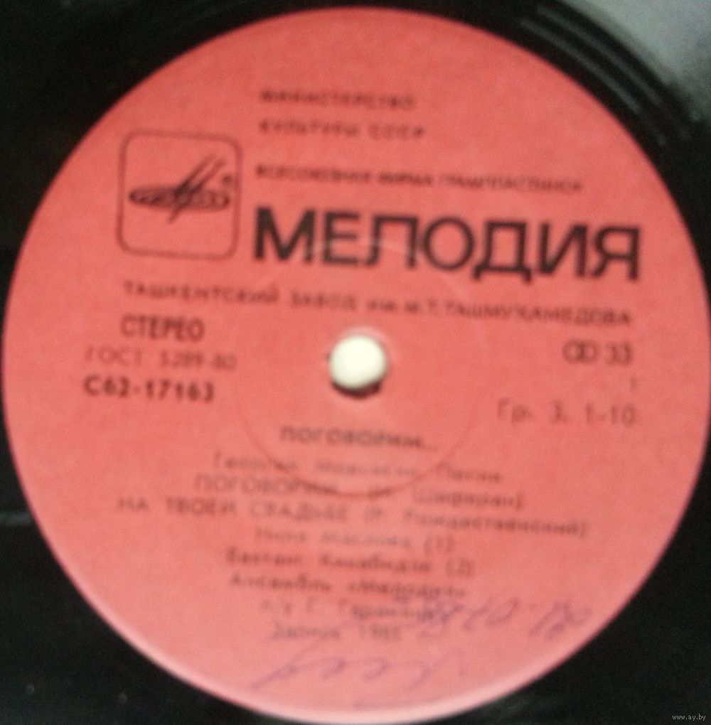 Производитель грампластинки – Ташкентский Завод Грампластинок им. М. Т. Ташмухамедова