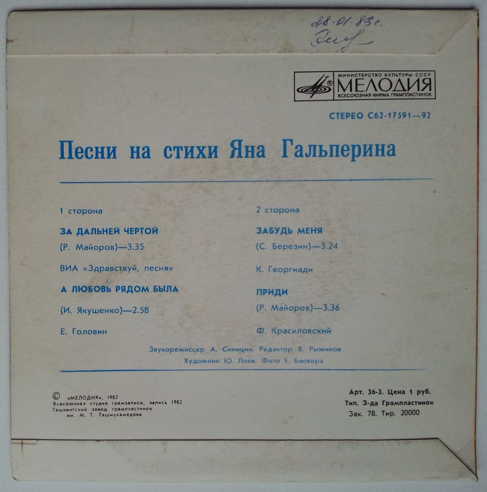 A1 Здравствуй, Песня– За Дальней Чертой Music By – Р. Майоров* 3:35
