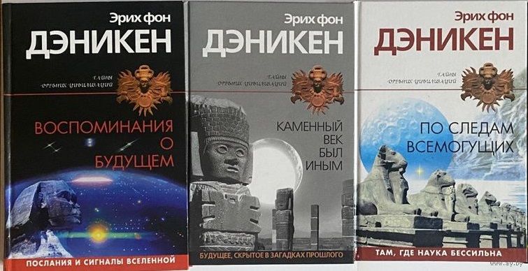 1. Воспоминания о будущем : Послания и сигналы Вселенной . Пер с нем . Серия : Тайны древних цивилизаций . М. Эксмо 2004 г. 512 с.ил. Твердый переплет, слегка увеличенный формат.