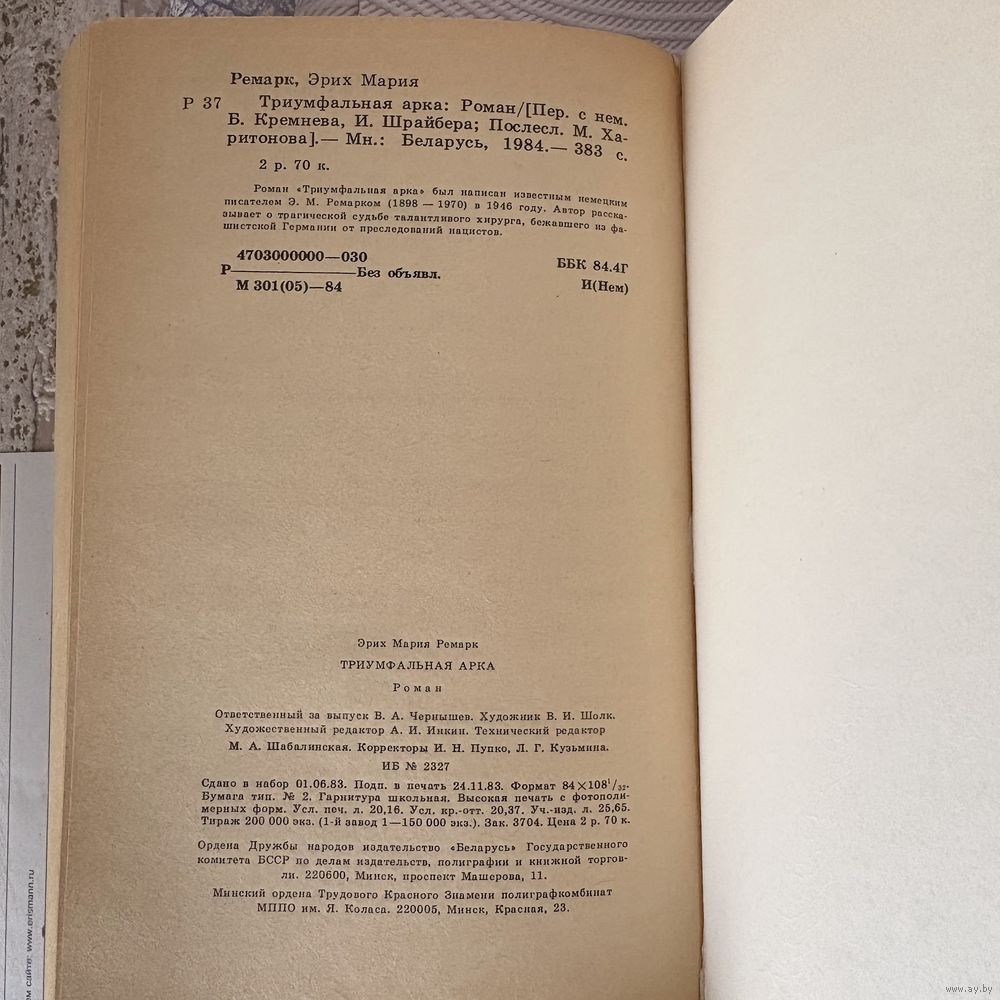 Роман немецкого писателя Эриха Марии Ремарка, впервые опубликованный в США в 1945 году; немецкое издание вышло в 1946. Вошёл в список бестселлеров по версии Publishers Weekly за 1946 год в США.