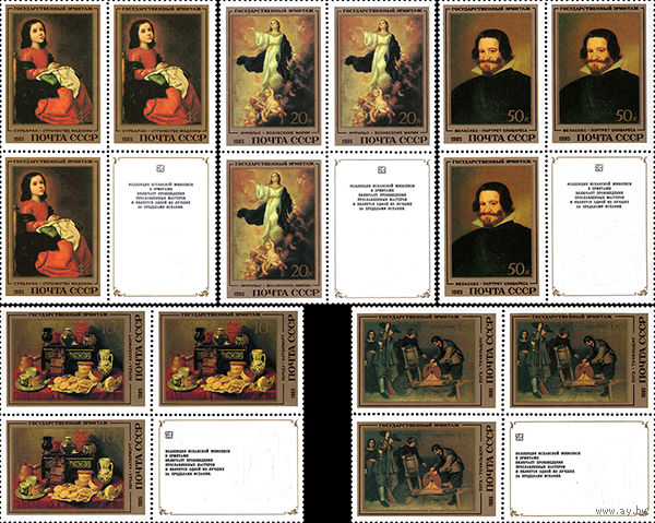 Эрмитаж (Испанская живопись) СССР 1985 год (5597-5601) серия из 5 марок в квартблоках с купонами