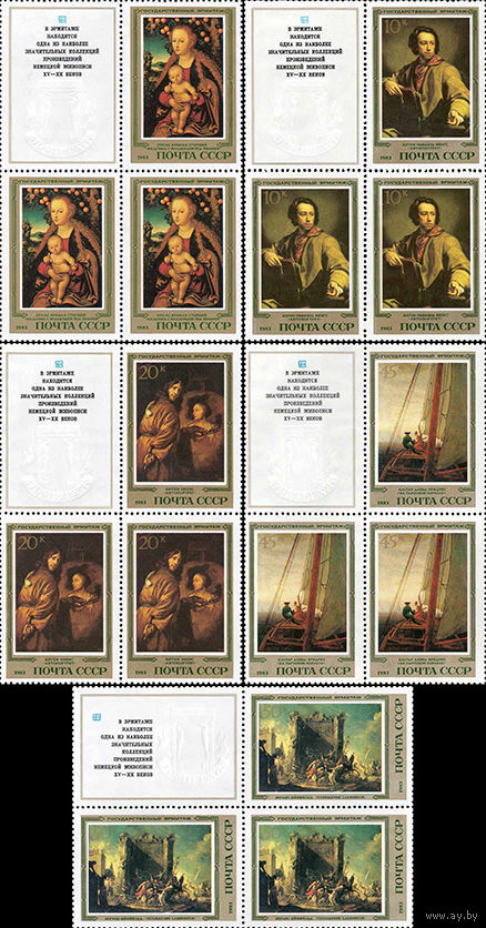 Эрмитаж (Немецкая живопись) СССР 1983 год (5449-5453) серия из 5 марок в квартблоках с с купонами
