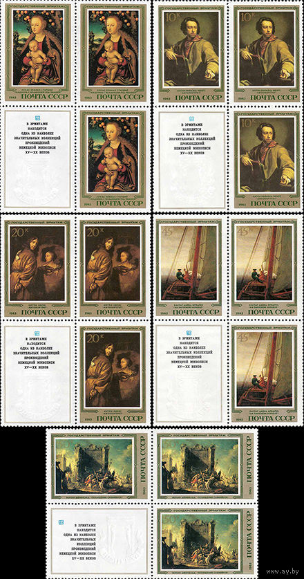 Эрмитаж (Немецкая живопись) СССР 1983 год (5449-5453) серия из 5 марок в квартблоках с с купонами