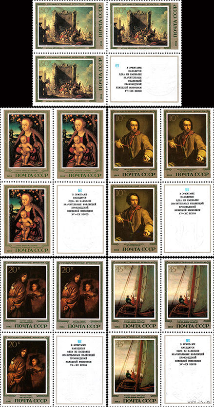 Эрмитаж (Немецкая живопись) СССР 1983 год (5449-5453) серия из 5 марок в квартблоках с с купонами