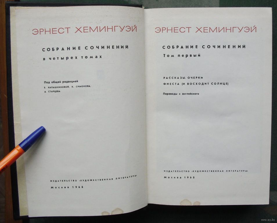 - Эрнест Хемингуэй. Рог быка (рассказ, перевод Е. Калашниковой), стр. 423-435