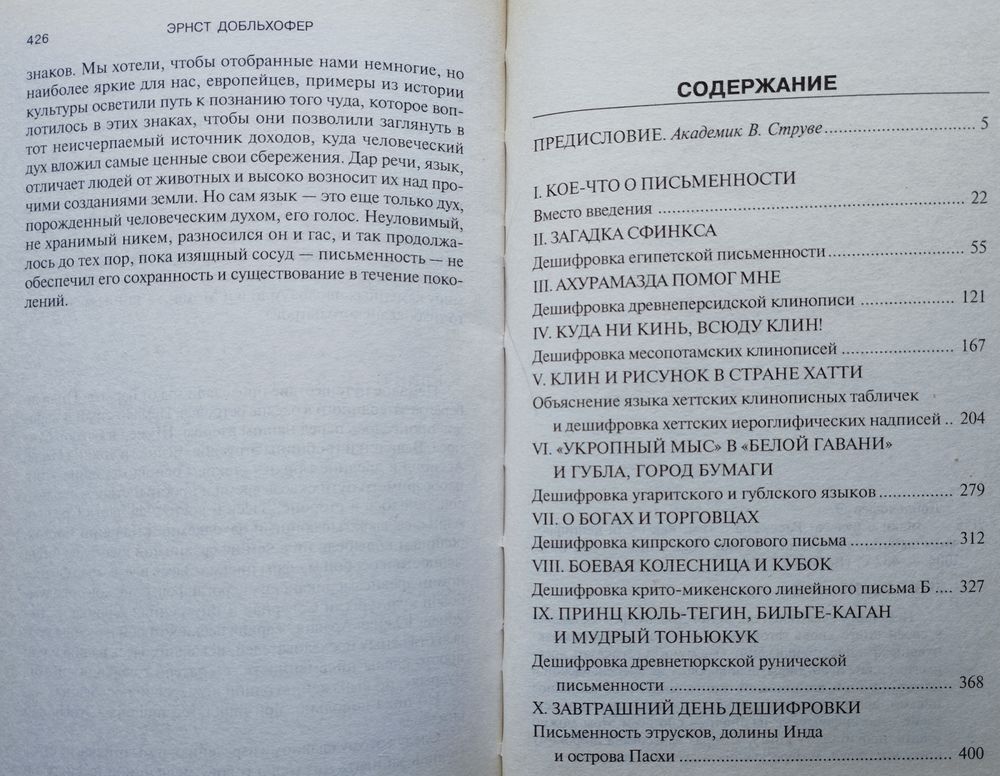 Тираж 5000 экз. 430 стр. Немецкий исследователь Эрнст Добльхофер заставляет в своей книге вновь заговорить, казалось, навеки умолкнувшие древние цивилизации. О чем могут рассказать древнеегипетские иероглифы, дешифровка древнеперсидской и месопотамской клинописей, крито-микенское линейное письмо, древнетюркская руническая письменность и хеттские иероглифические надписи - обо всем этом можно узнать, прочитав эту книгу, которая адресована широкому кругу читателей, интересующихся древней историей.