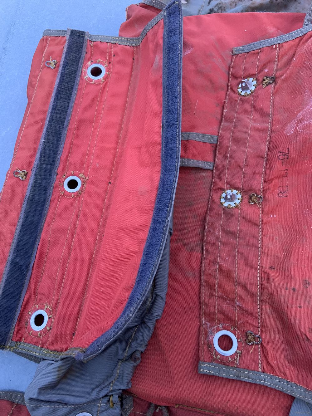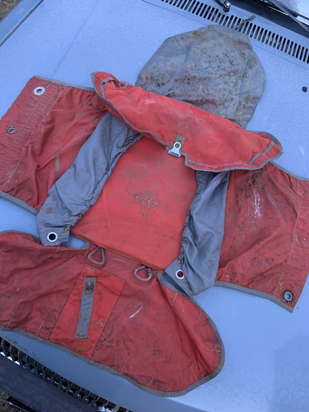 | всё цело,требует для идеала чистки.В полках мыли в солярке. прочнейшая ткань на толстых нитках. | |
