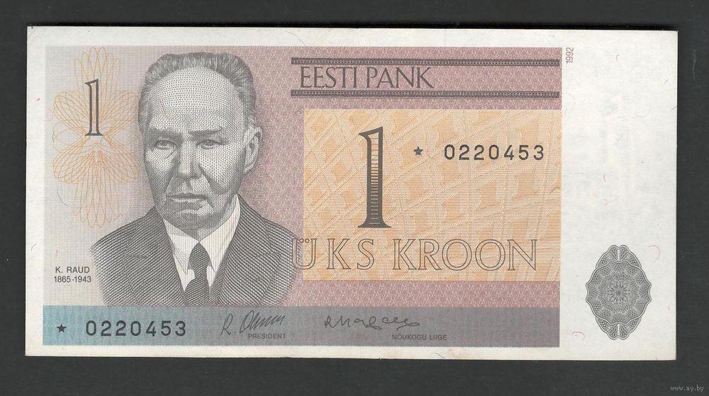 Эстония 1 крона 1992 года. Замещенная серия со звездой. Тип Р-69. Состояние aUNC
