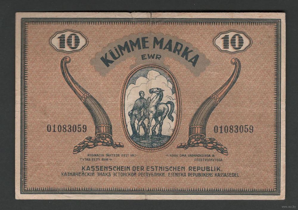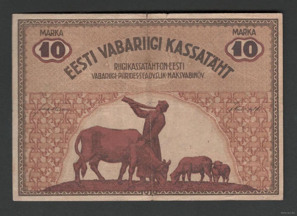 Эстония 10 марок 1919 года. Тип Р-46d. Состояние XF