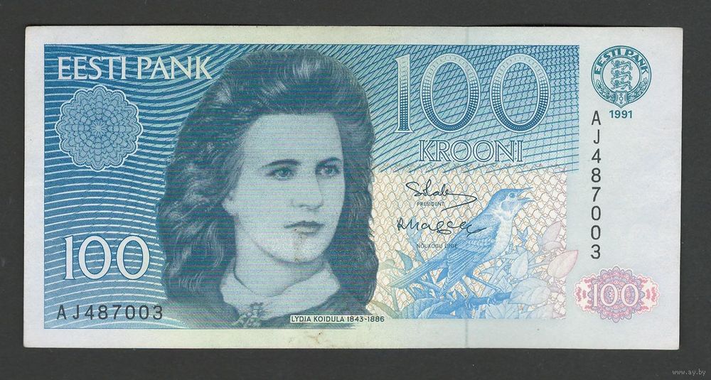 Эстония 100 крон 1991 года. Тип Р-74а. Состояние XF