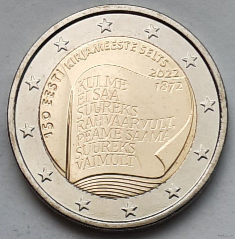 Эстония 2 евро 2022 г. 150-летие Эстонского литературного общества
