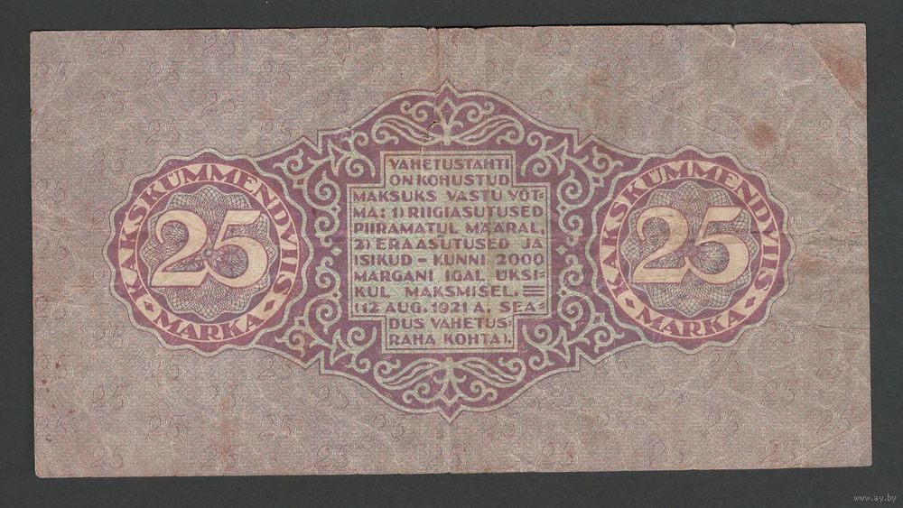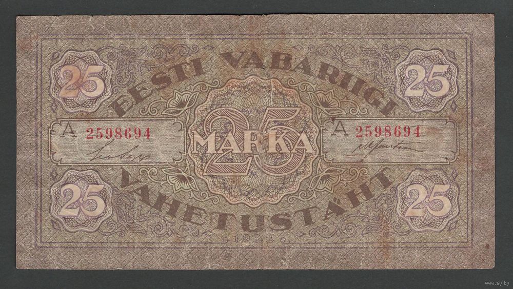 Эстония 25 марок 1922 года. Тип Р-54c. Состояние VF+
