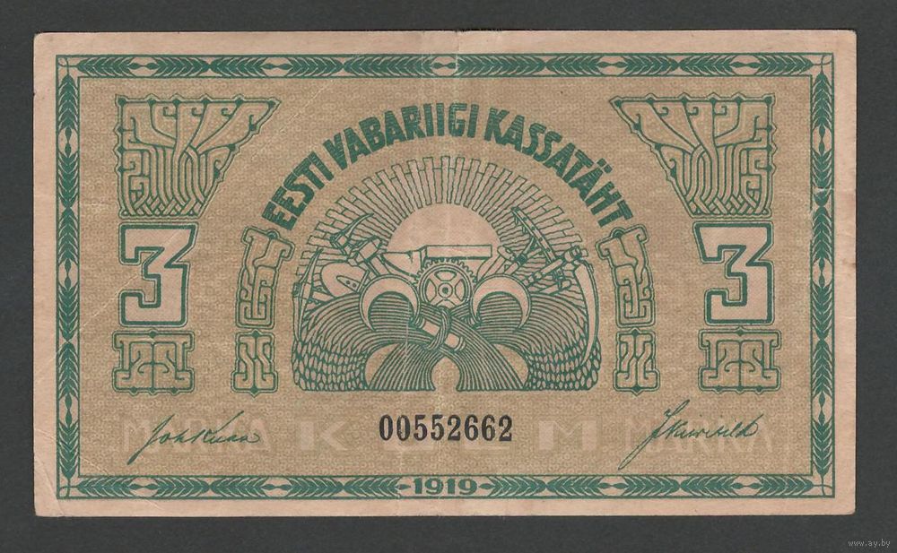 Эстония 3 марки 1919 года. Тип Р-44а. Состояние XF