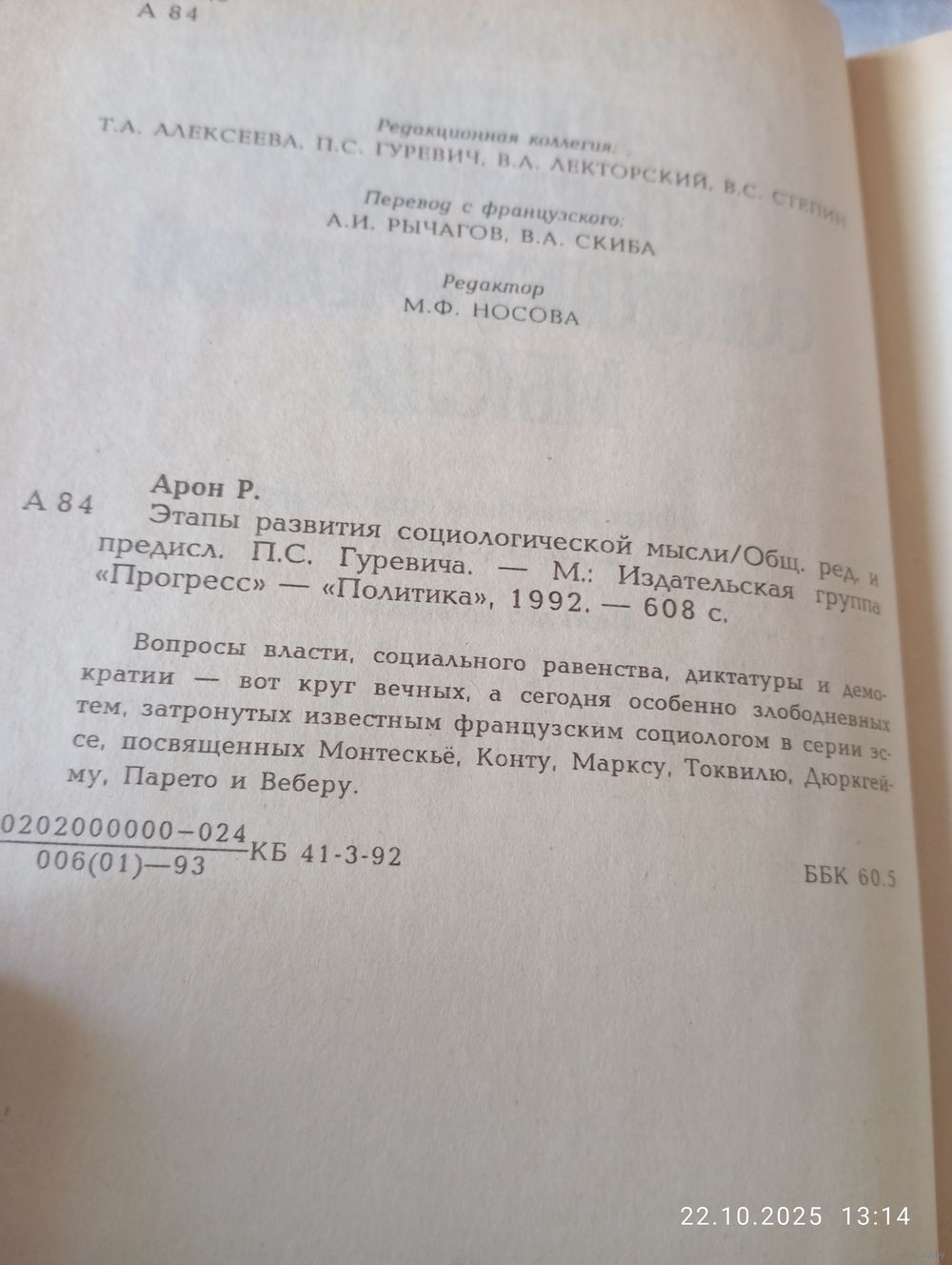 Этапы развития социологической мысли. Раймон Арон. М. Прогресс 1993. В хорошем состоянии, тв переплет. 608 с. Возможность отправки Белпочтой, полная предоплата