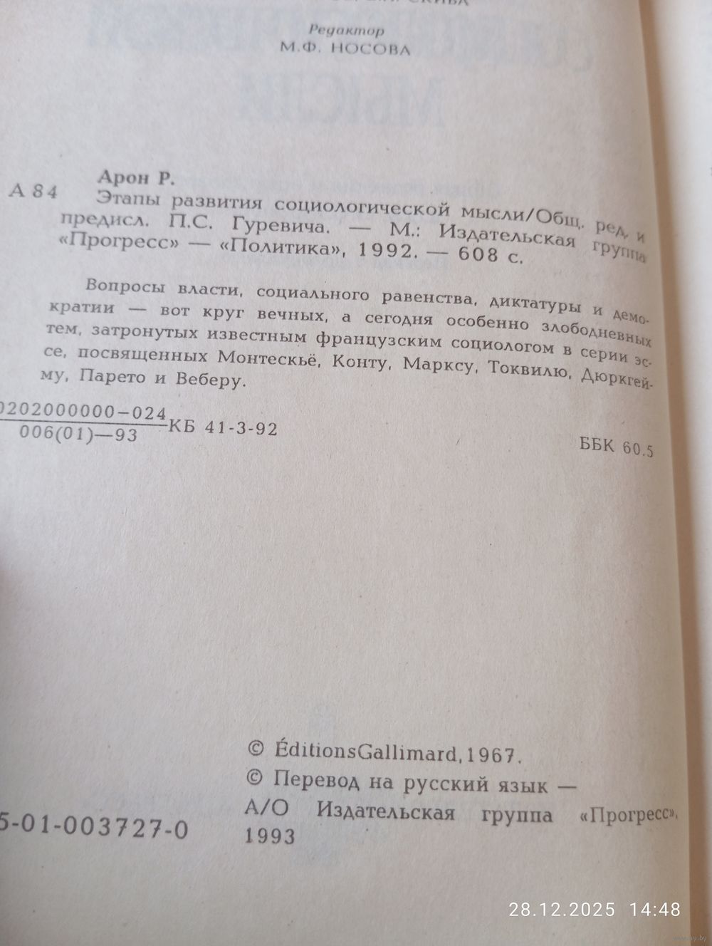 Р. Арон. Этапы развития социологической мысли. М. Прогресс 1993. В хорошем состоянии, тв переплет. 607 с. Возможность отправки Белпочтой, полная предоплата