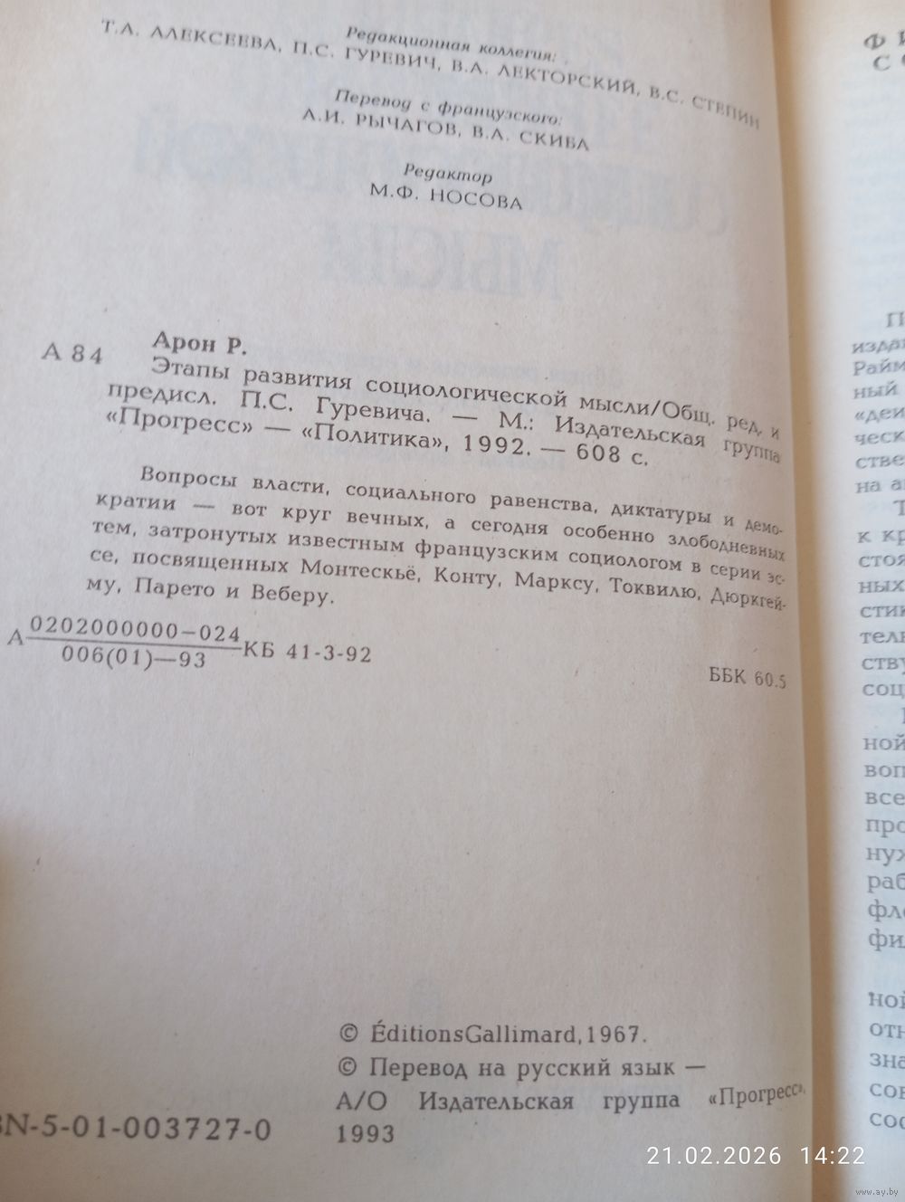 Этапы развития социологической мысли. Р. Арон. М. Прогресс 1993. В хорошем состоянии, тв переплет. 608 с. Возможность отправки Белпочтой, полная предоплата