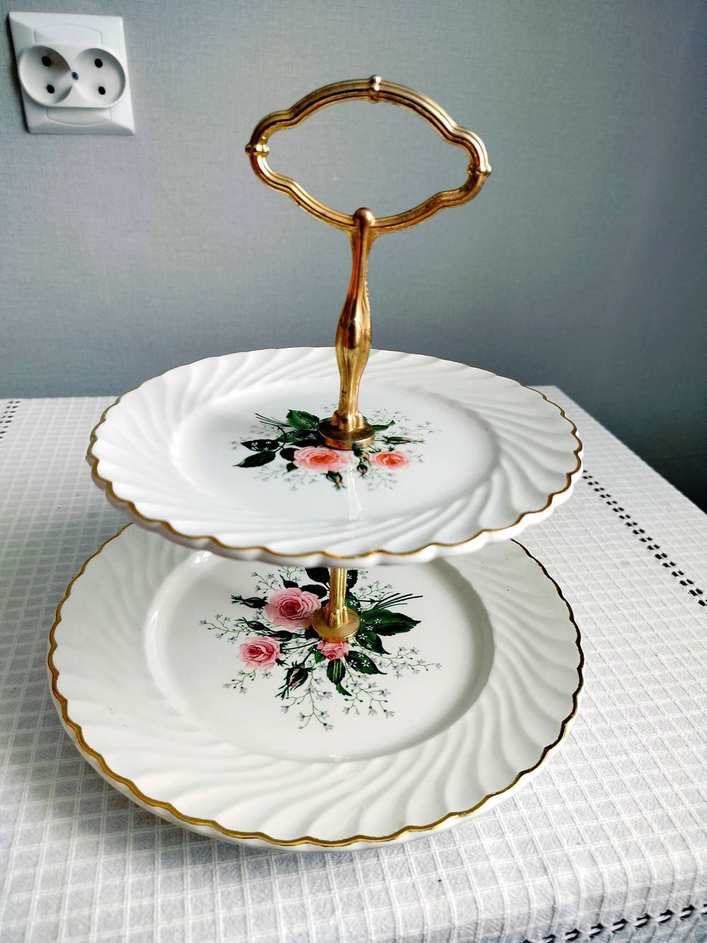Двухъярусная горка для подачи закусок, фруктов, десертов от знаменитой мануфактуры Luneville, которая была основана в 1730 году на северо-востоке Франции. В XIX веке, под руководством Келлера и Герена, фабрика внедряла промышленные достижения, сохраняя при этом свое художественное наследие (клеймо в виде круга с короной, содержащий инициалы «K» и «G» Келлера и Геррена).