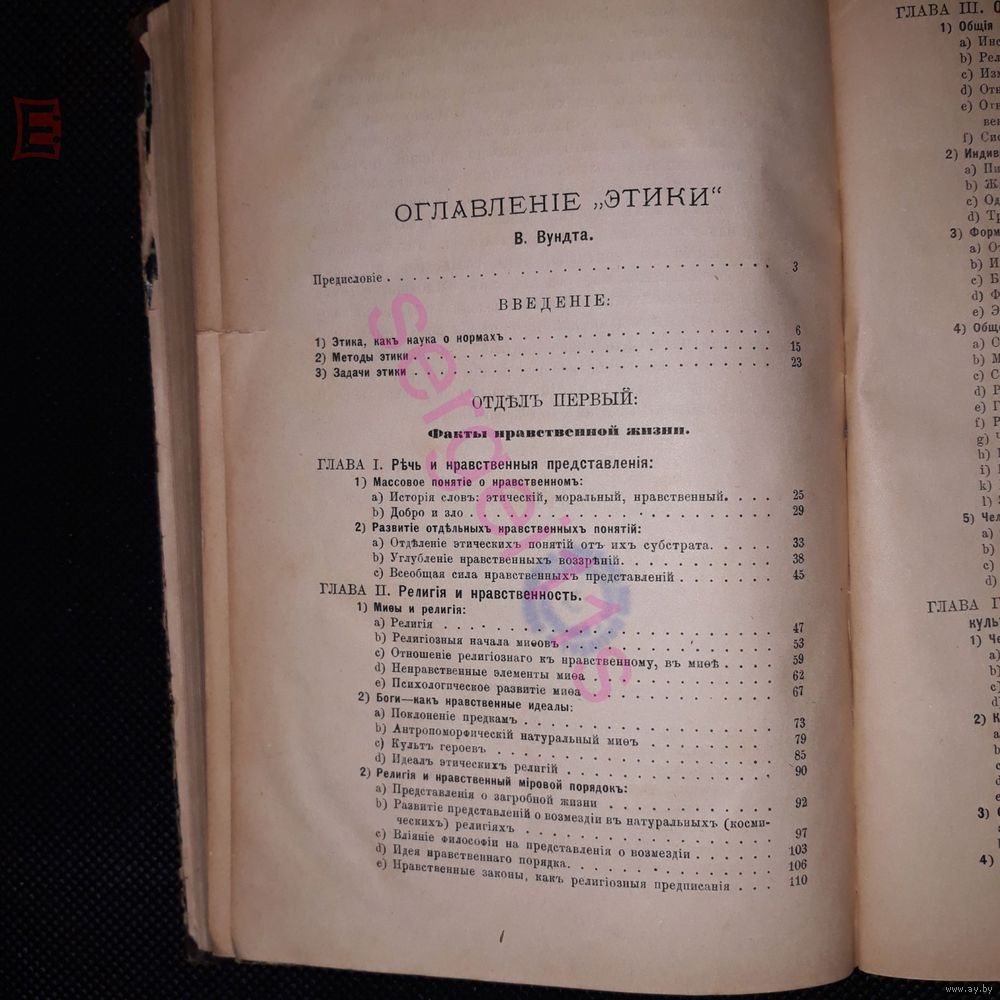 утерян титуьный «ЭТИКА» (Die Ethik, 1886, рус. пер. 1887–88) – сочинение В.Вундта, содержащее обоснование позиции универсального эволюционизма в этике. Вундт полагает, что этика должна получить научное обоснование исходя из психологии. Поскольку человек живет в обществе и нравственность лишена смысла по отношению к изолированному индивиду, «преддверием этики» является психология народов, в частности исследование исторического развития нравов и нравственных представлений с точки зрения психологии. Для объяснения индивидуальной духовной жизни Вундт использует понятия и концепции индивидуальной психологии.