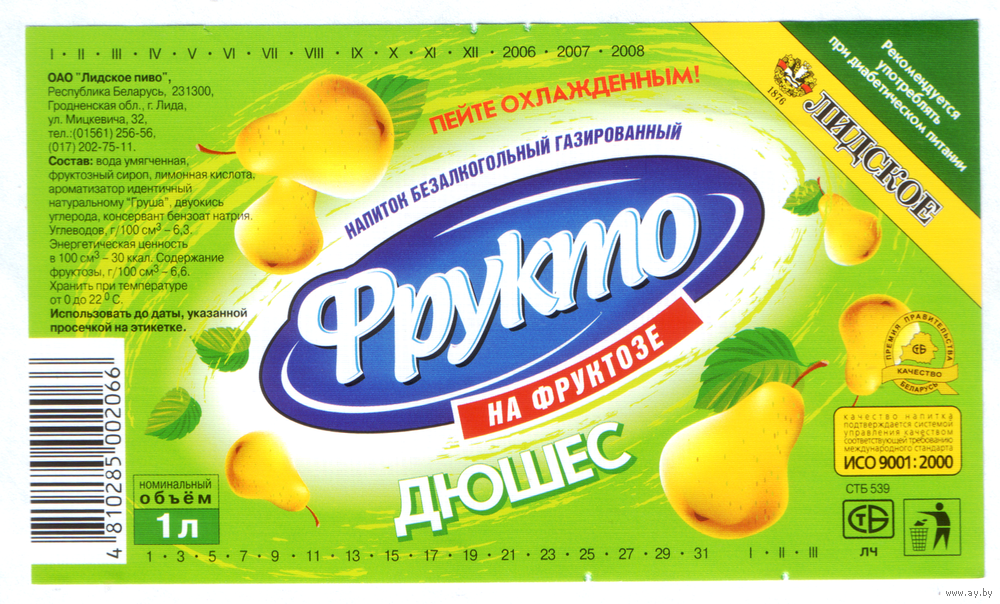 Этикетка Фрукто Дюшес 1л Лидский ПЗ