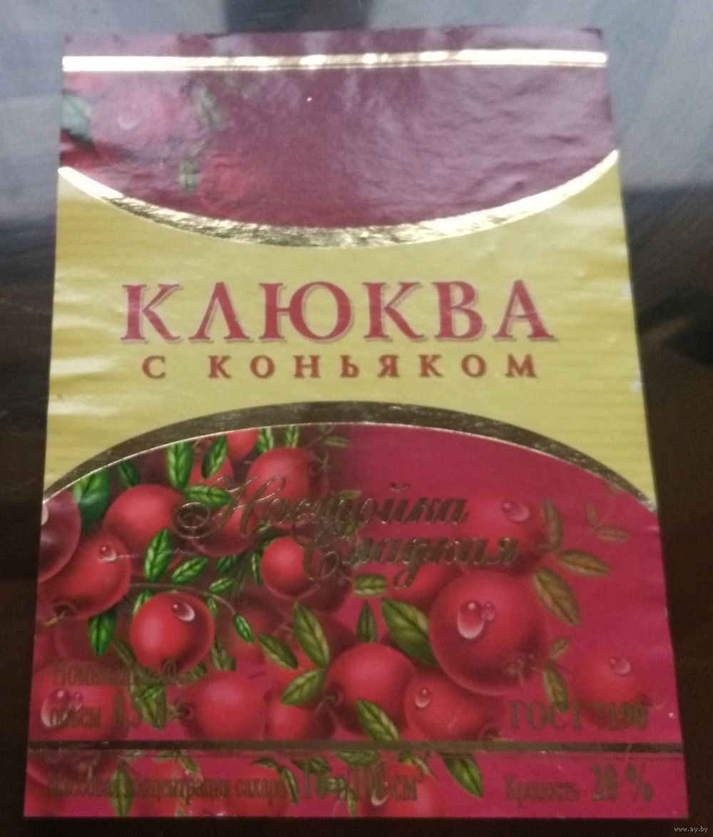 Этикетка настойка Клюква с коньяком