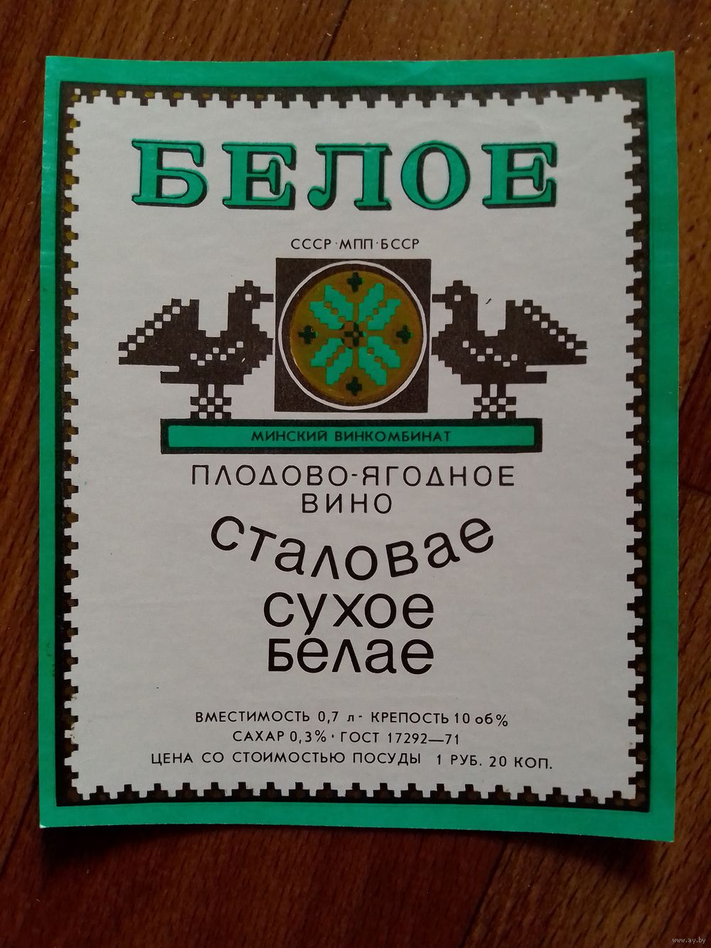 Этикетка от вина. БССР
